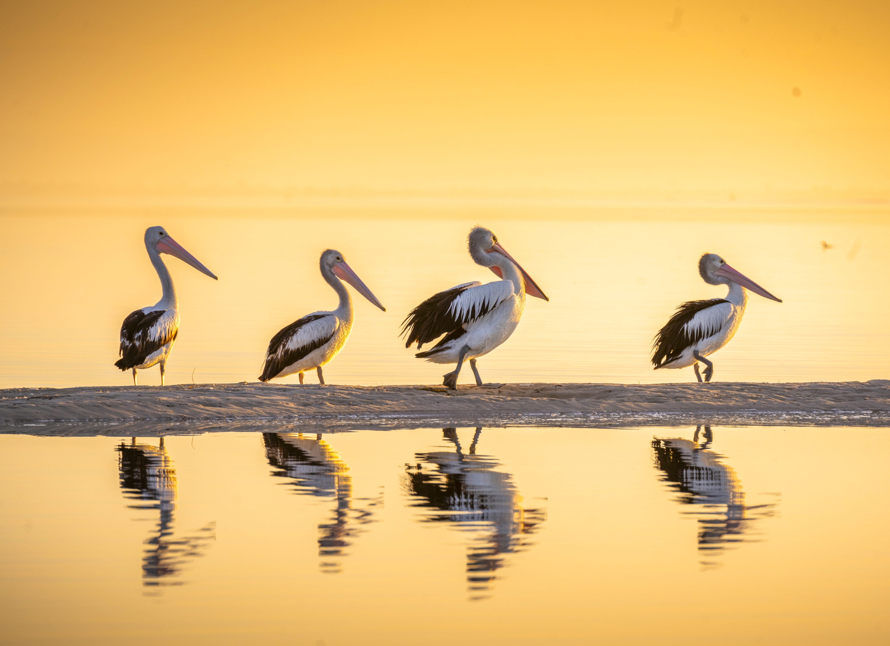 Pelicans at sunrise on the Mandurah Estuary at Wananup in Western Australia on January 2, 2025. The estuary’s shallow, nutrient-rich waters supply the birds with a variety of fish species. (Photo by Phil Wilkinson/The Times)