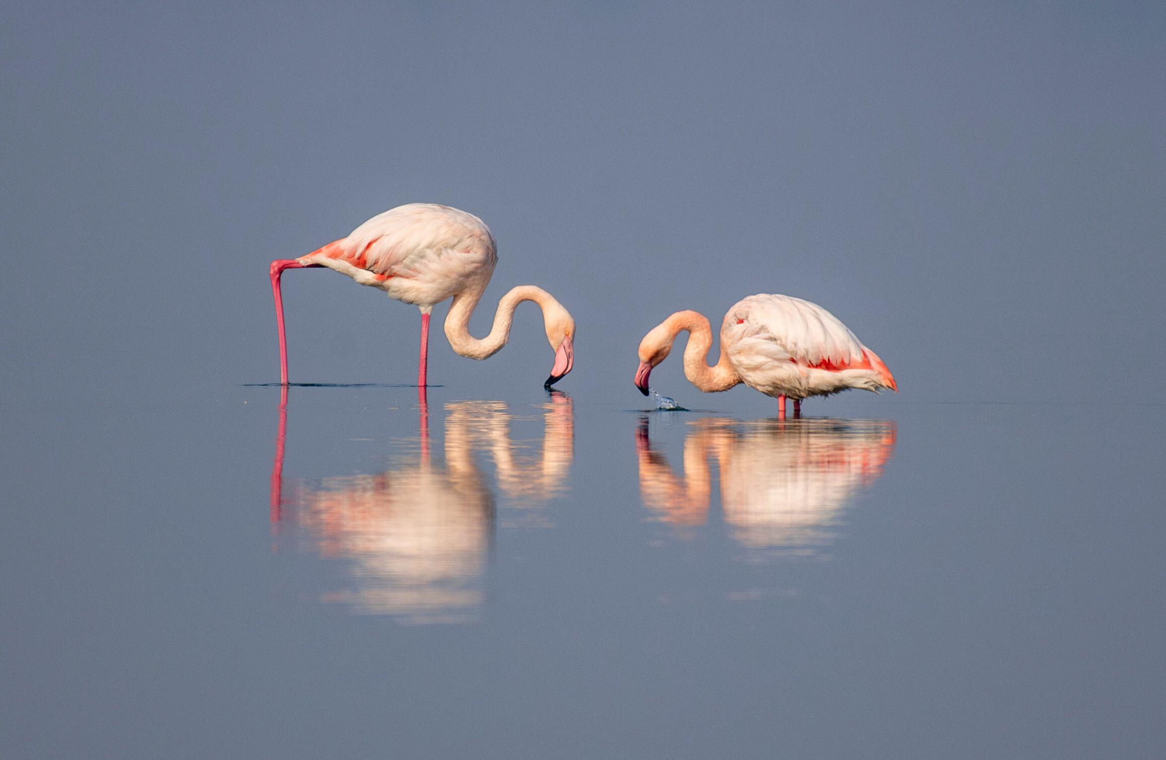 This photo taken on January 1, 2025 shows flamingos resting at a salt lake wetland after they arrive for wintering in Yuncheng City, north China's Shanxi Province. (Photo by Xue Jun/Xinhua/Alamy Live News)
