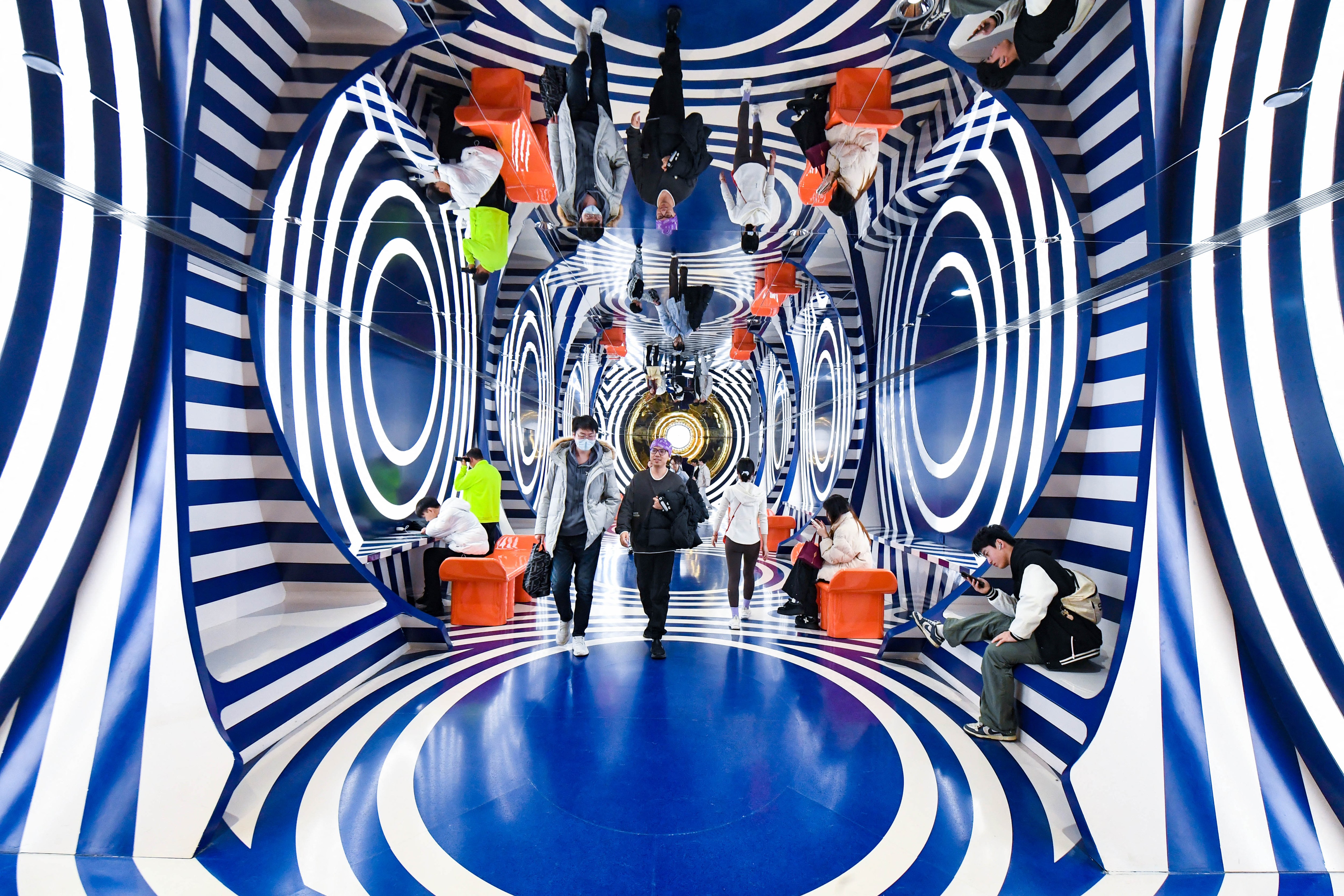 People are seen at the waiting area of a newly-built luxury toilet at a shopping mall in Nanjing, in east China's Jiangsu province on January 2, 2025. (Photo by AFP Photo/China Stringer Network)