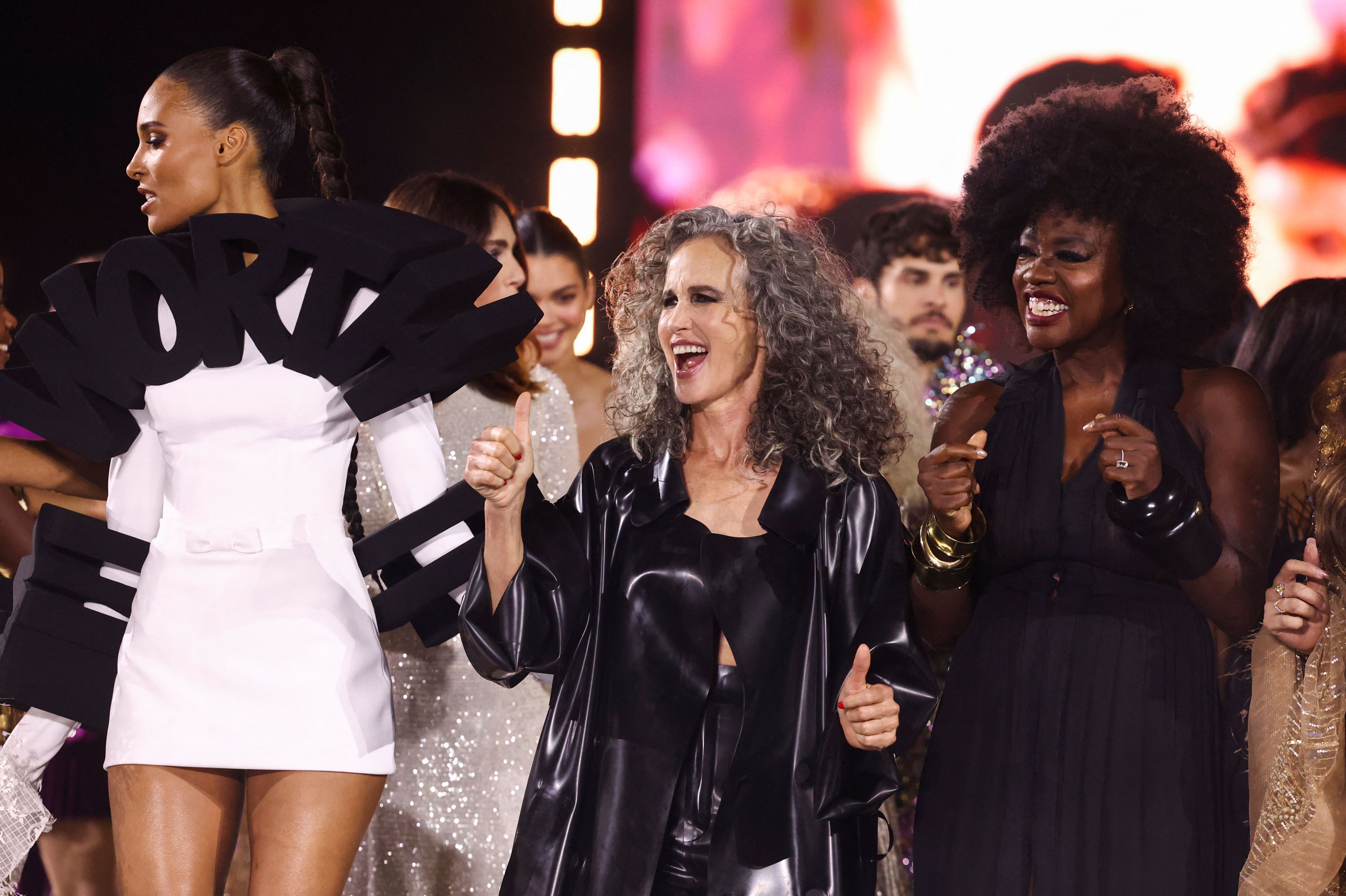 Model Cindy Bruna, and actors Andie MacDowell and Viola Davis attend public show named “Walk Your Worth” organised by French cosmetics group L'Oreal near the Eiffel Tower as part of Paris Fashion Week, in Paris, France on October 1, 2023. (Photo by Stephanie Lecocq/Reuters)