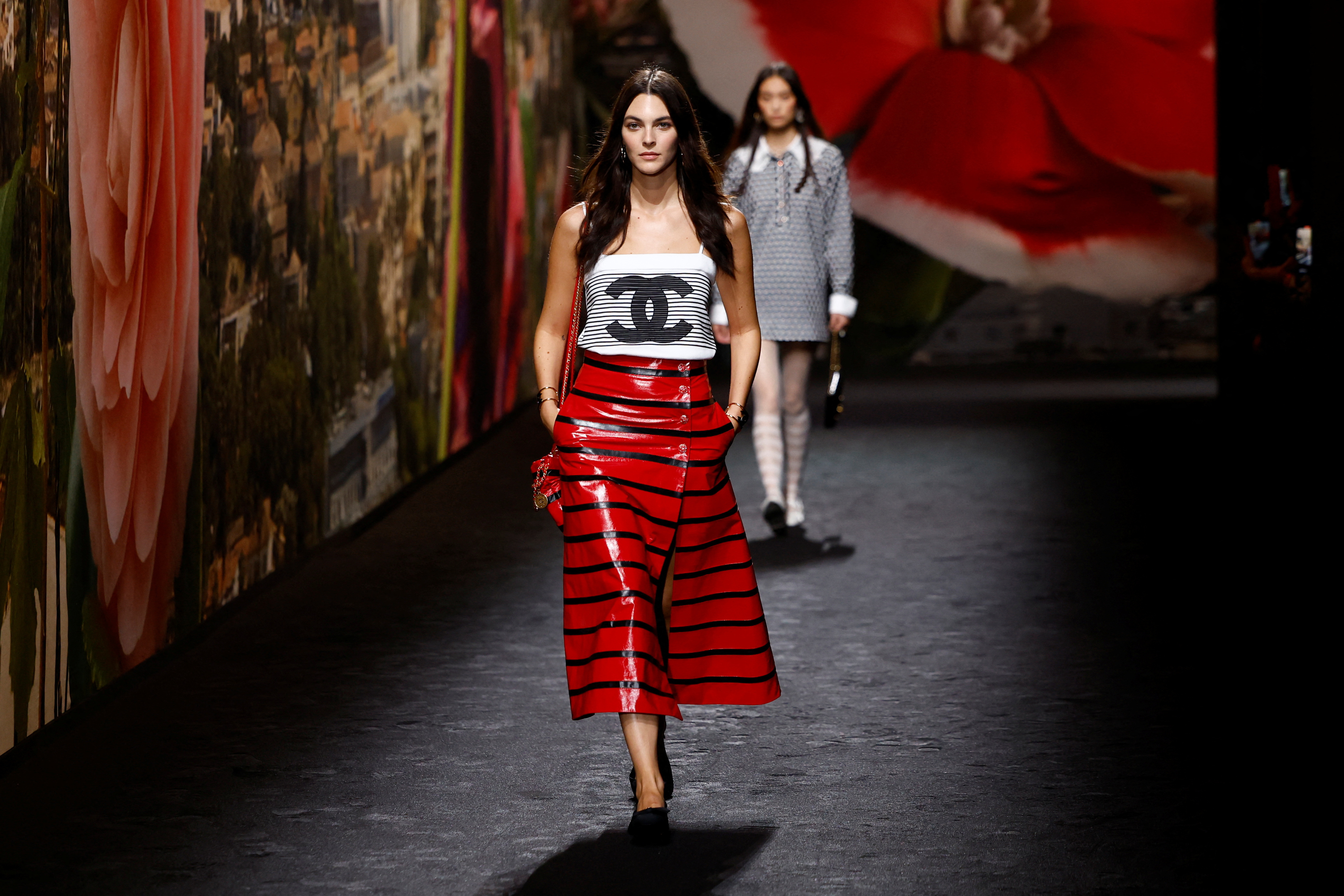 Italian model Vittoria Ceretti presents a creation by designer Virginie Viard as part of her Spring/Summer 2024 Women's ready-to-wear collection show for fashion house Chanel during Paris Fashion Week in Paris, France ob October 3, 2023. (Photo by Sarah Meyssonnier/Reuters)