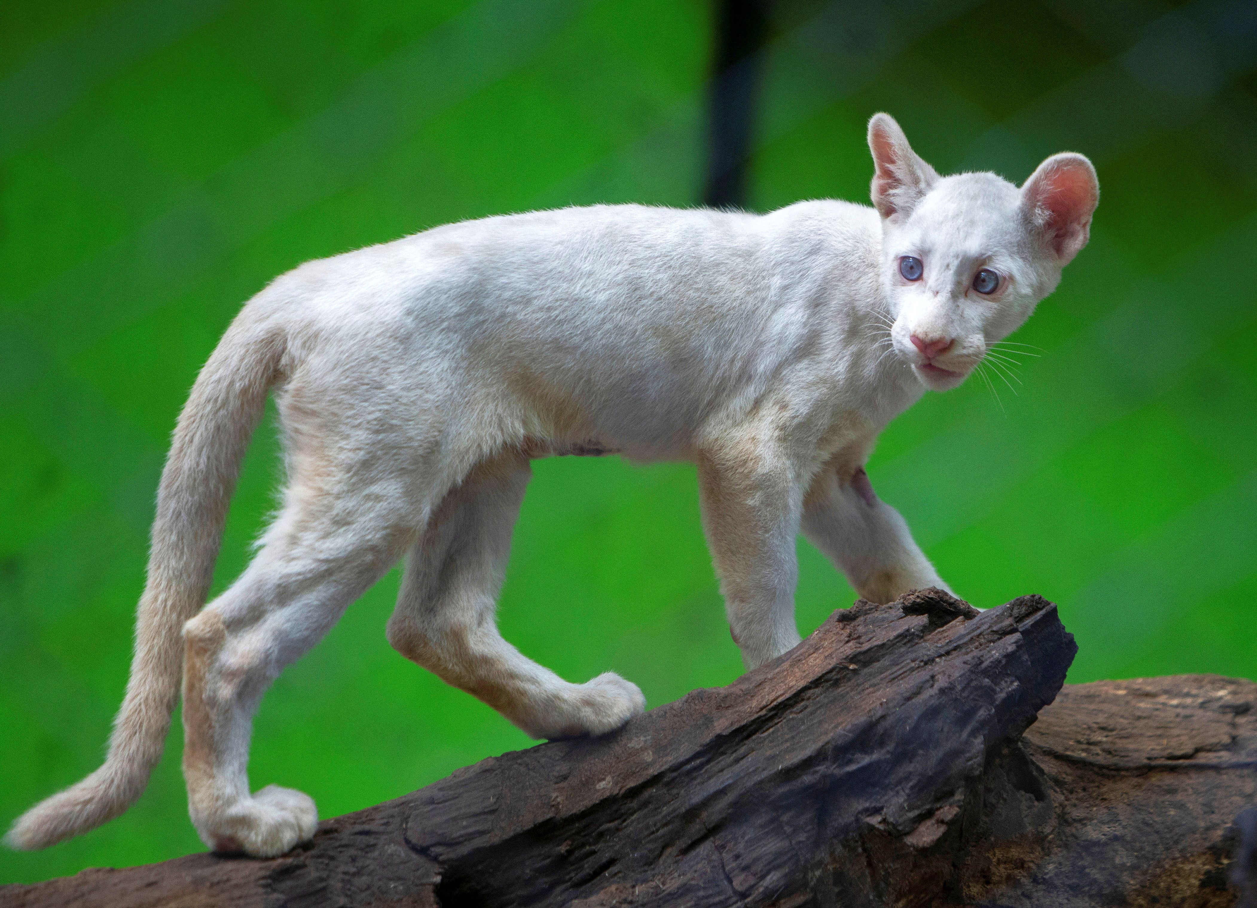 Itzae, a three-and-a-half-month-old albino puma cub, walks in its enclosure as it is being presented to the public for the first time, at the Thomas Belt Zoo, in Juigalpa, Nicaragua on November 10, 2023. (Photo by Maynor Valenzuela/Reuters)