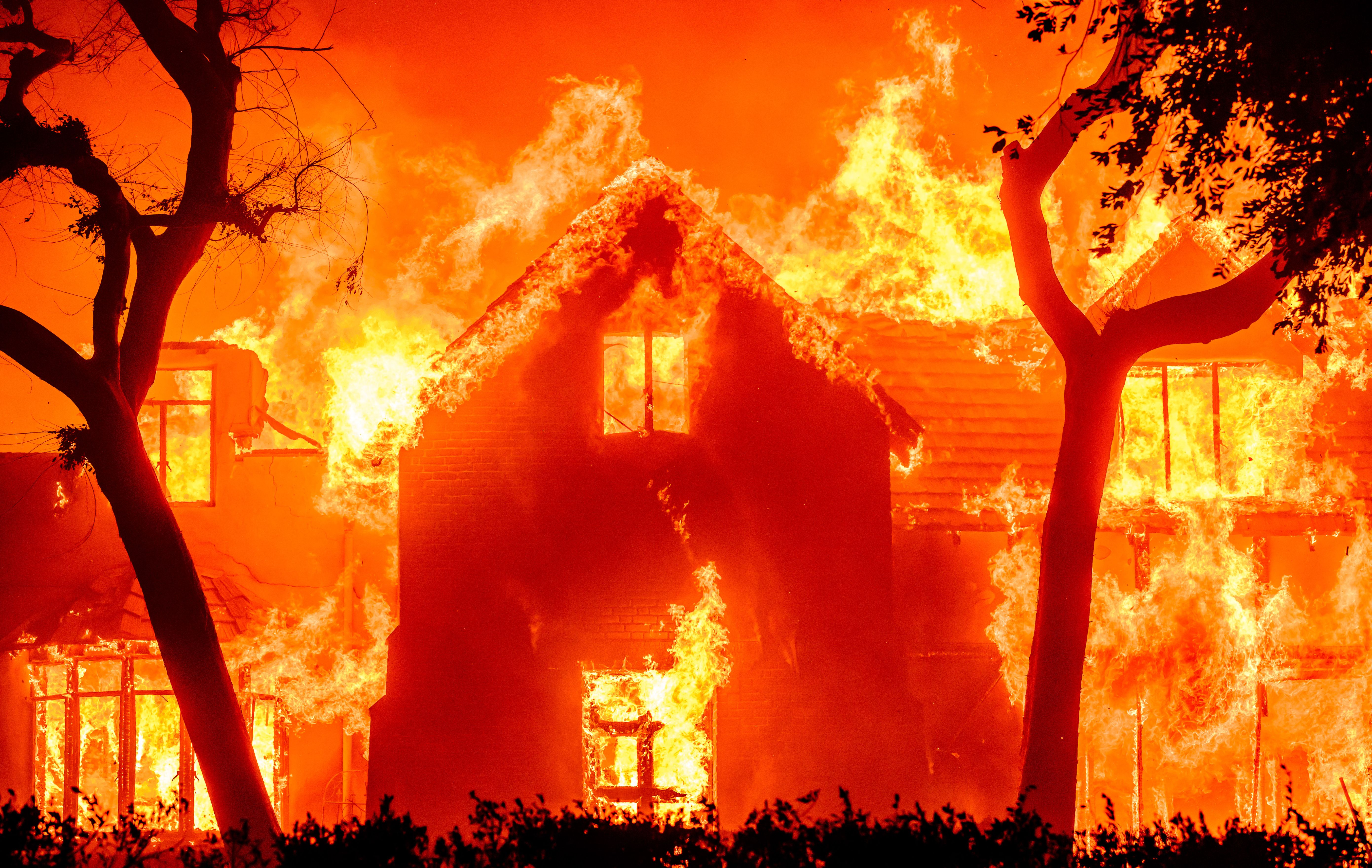 A home is engulfed in flames during the Eaton fire in the Altadena area of California, US on January 7, 2025. (Photo by Josh Edelson/AFP Photo)