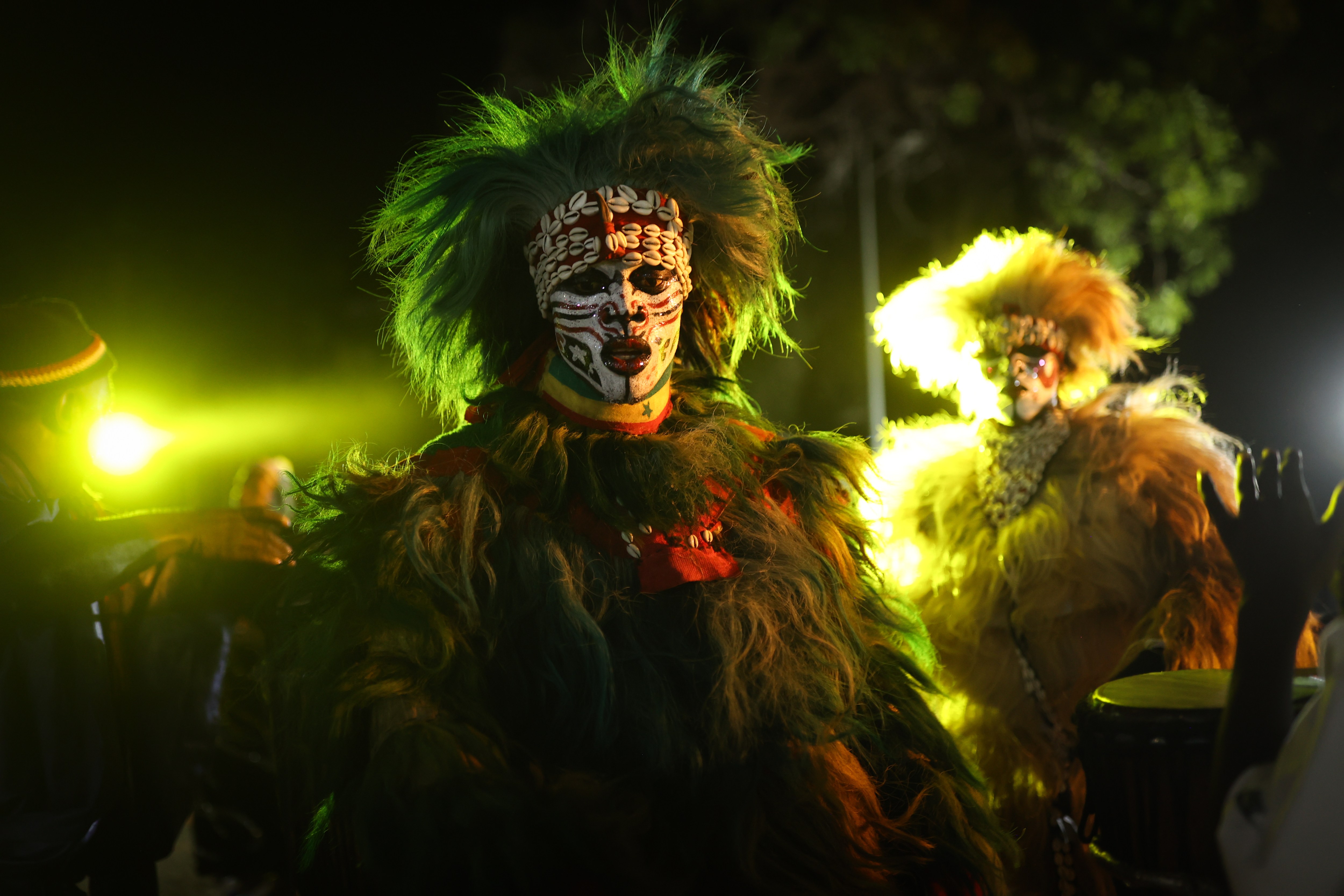 Performers dance at the Fanal Festival in Saint-Louis, Senegal, an event that sheds light on the city's rich history and continues to captivate the local community on December 29, 2024. Once the political capital of French West Africa (AOF) from 1895 to 1902, and the capital of both Senegal and Mauritania until 1957, Saint-Louis is a place where colonial-era traditions still thrive. This year, the festival, themed “The Driving Force of Development: Culture”, featured three illuminated fanals (giant lanterns), which were brought to the city's square accompanied by local dances and songs. (Photo by Cem Ozdel/Anadolu via Getty Images)