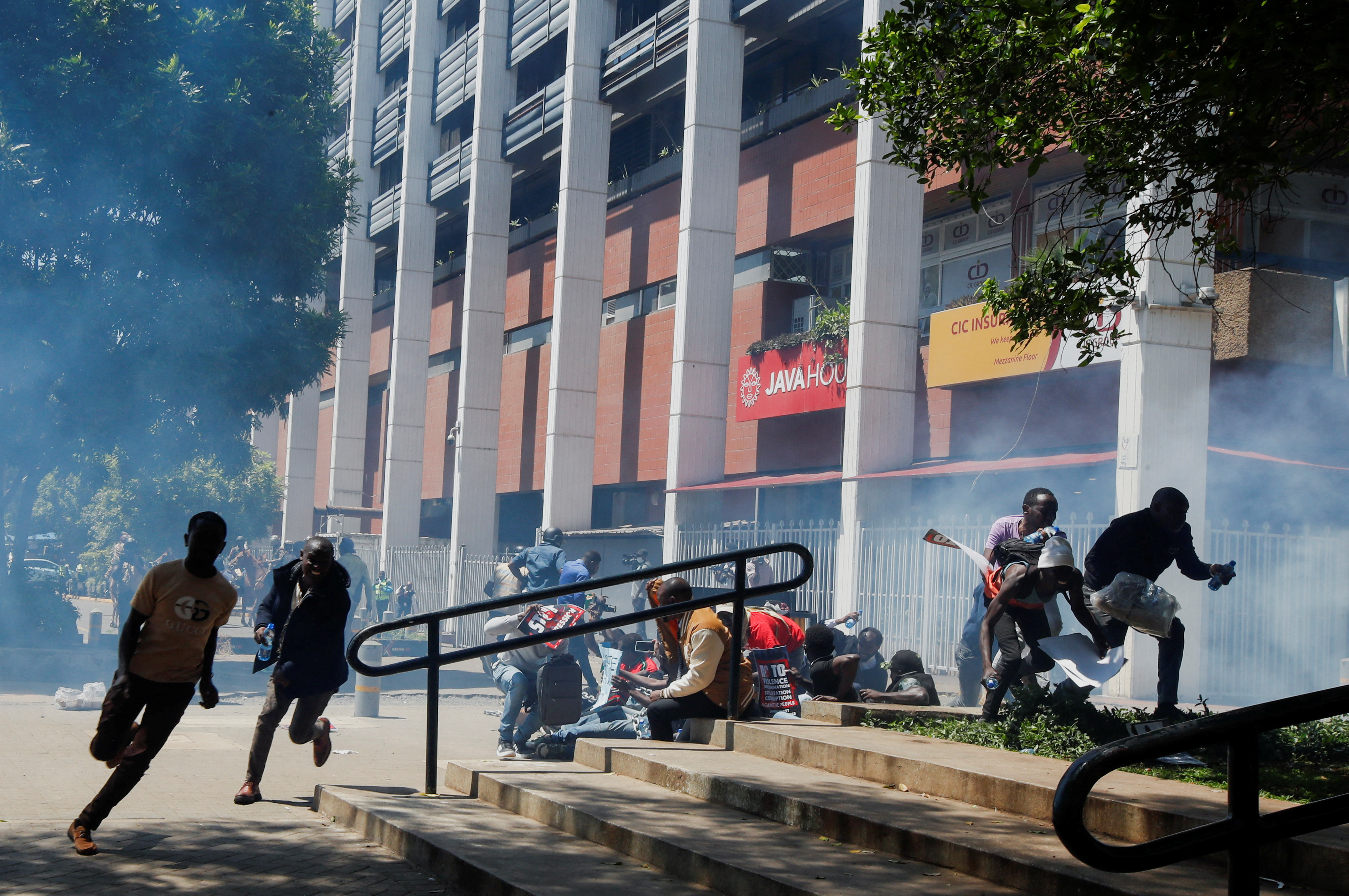 Riot police lob tear gas canisters as they attempt to disperse protesters demonstrating against what they say is a wave of unexplained abductions of government critics, along the Aga Khan walk in downtown Nairobi, Kenya on December 30, 2024. (Photo by Monicah Mwangi/Reuters)