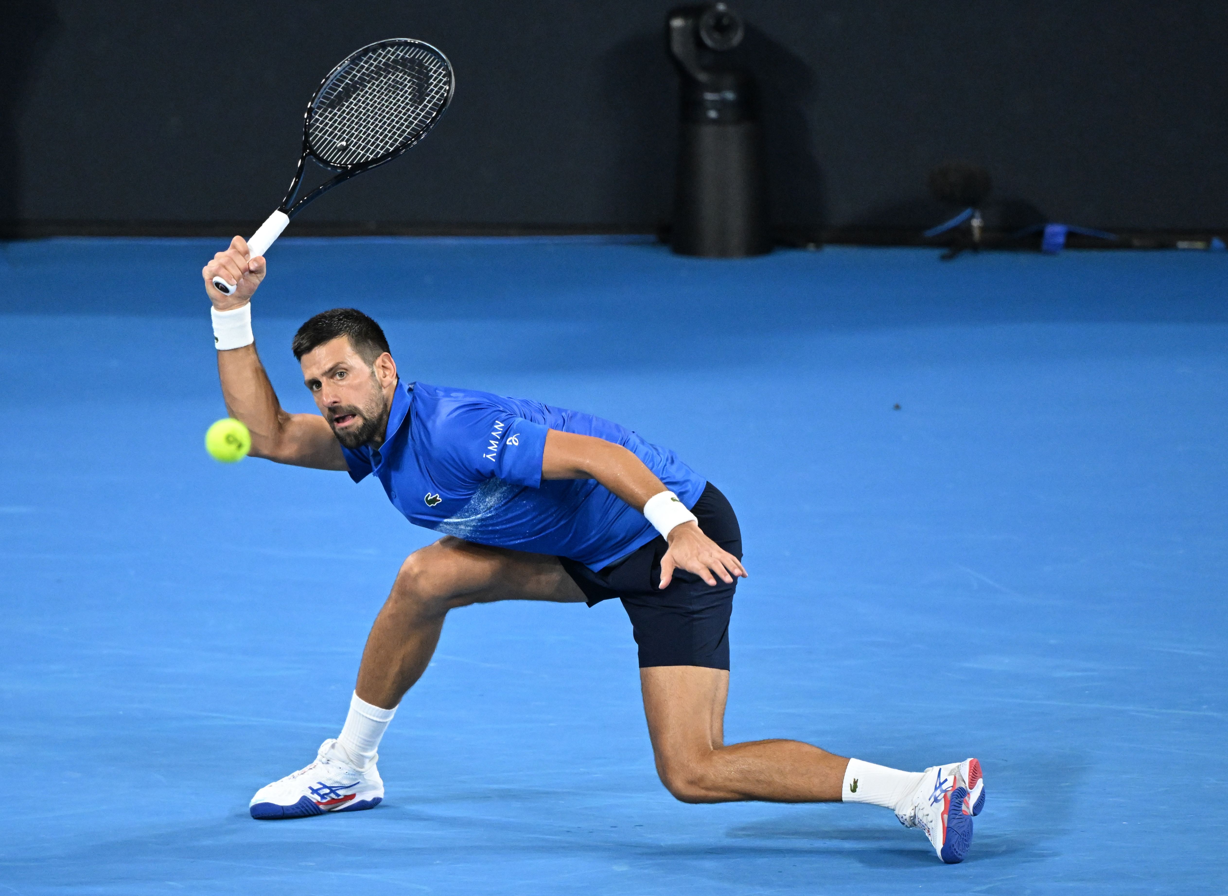 Novak Djokovic of Serbia in action during his quarter-finals match against Reilly Opelka of USA at the Brisbane International tennis tournament in Brisbane, Australia, 03 January 2025. (Photo by Darren England/EPA/EFE)