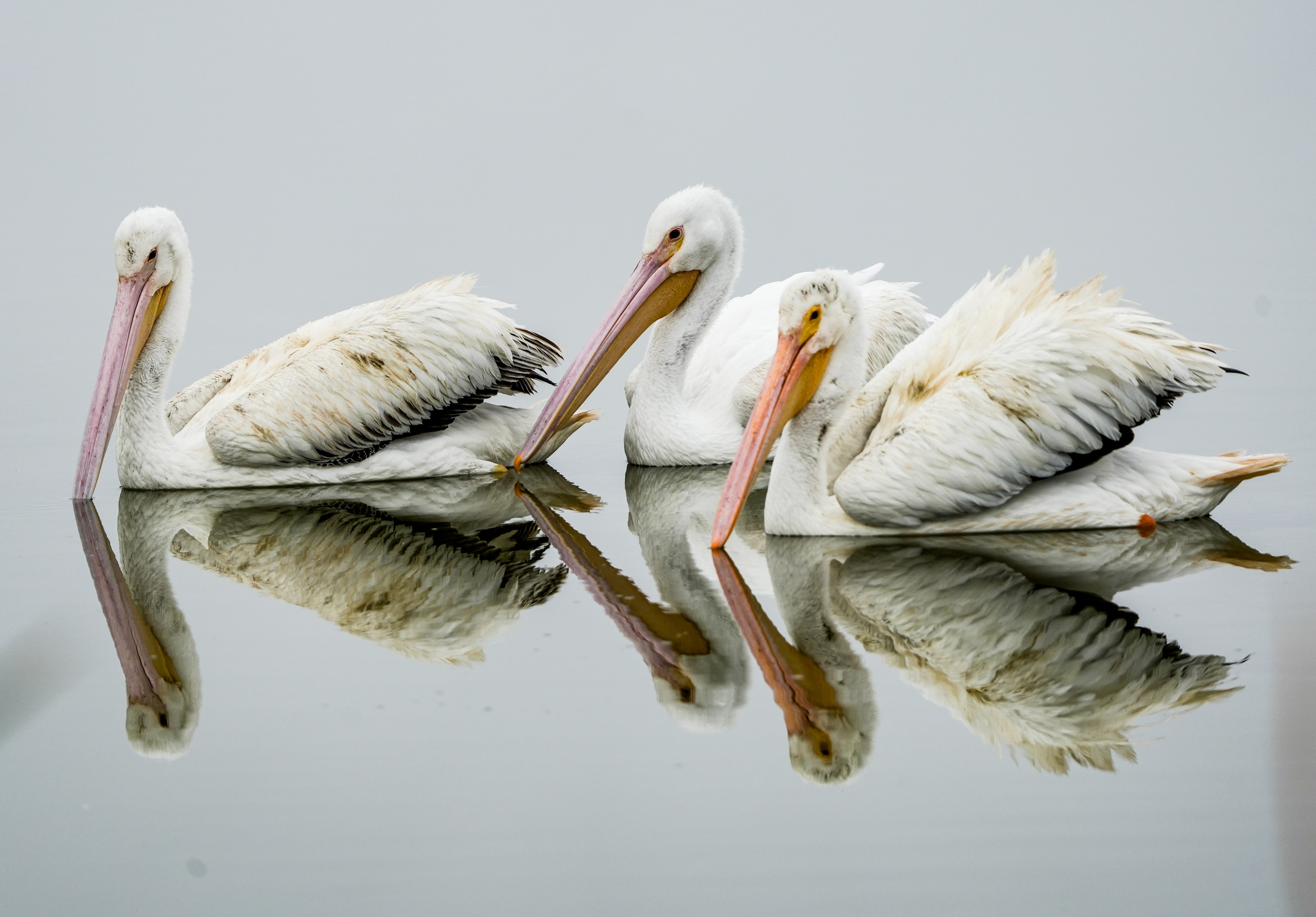 White Pelicans are reflected in the waters of the Viera Wetlands in Viera, Fl. on December 30, 2024. (Photo by USA Today)