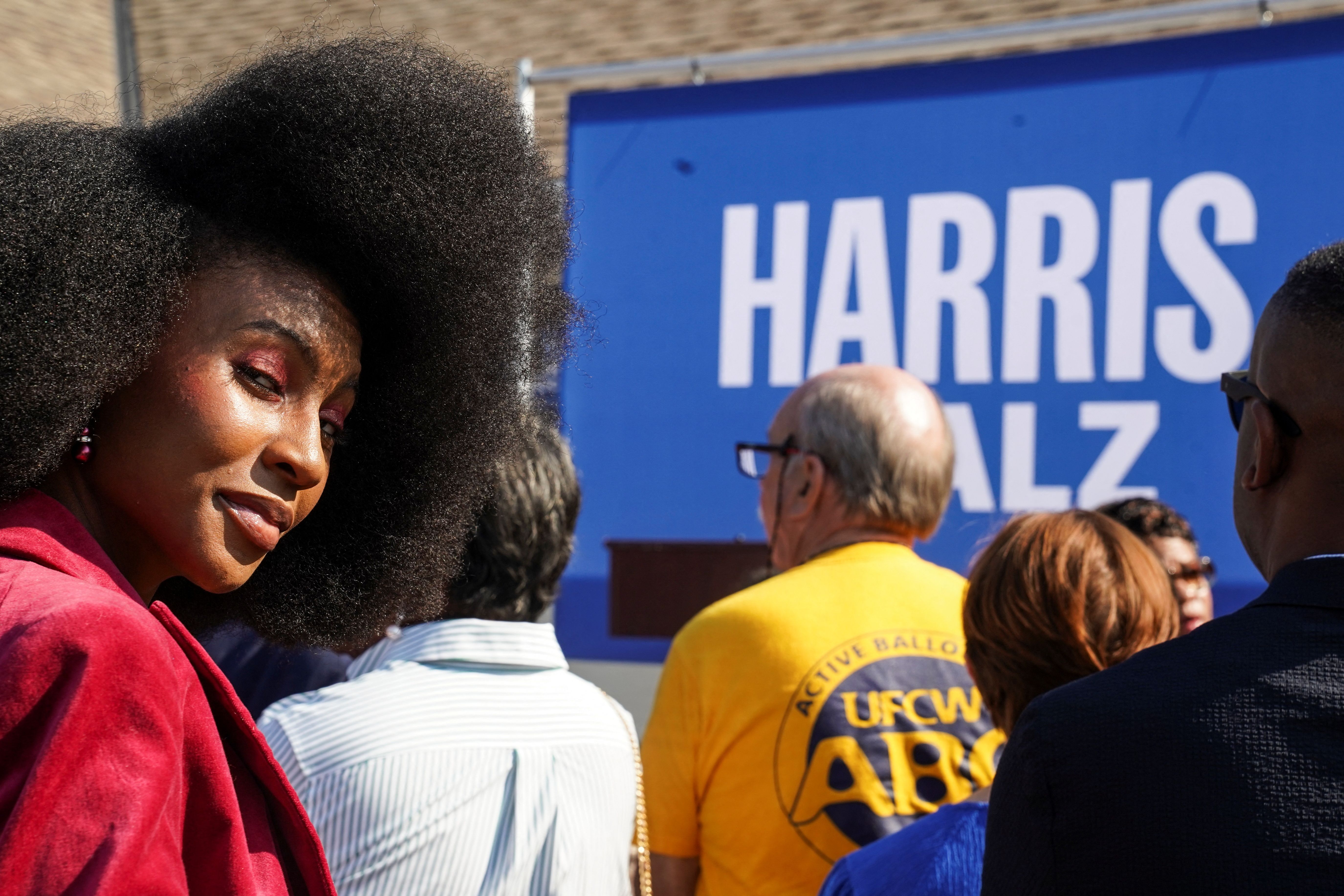 A person looks on during a visit by former U.S. President Bill Clinton in Georgia, in support of Kamala Harris, in Columbus, Georgia, on October 14, 2024. (Photo by Megan Varner/Reuters)