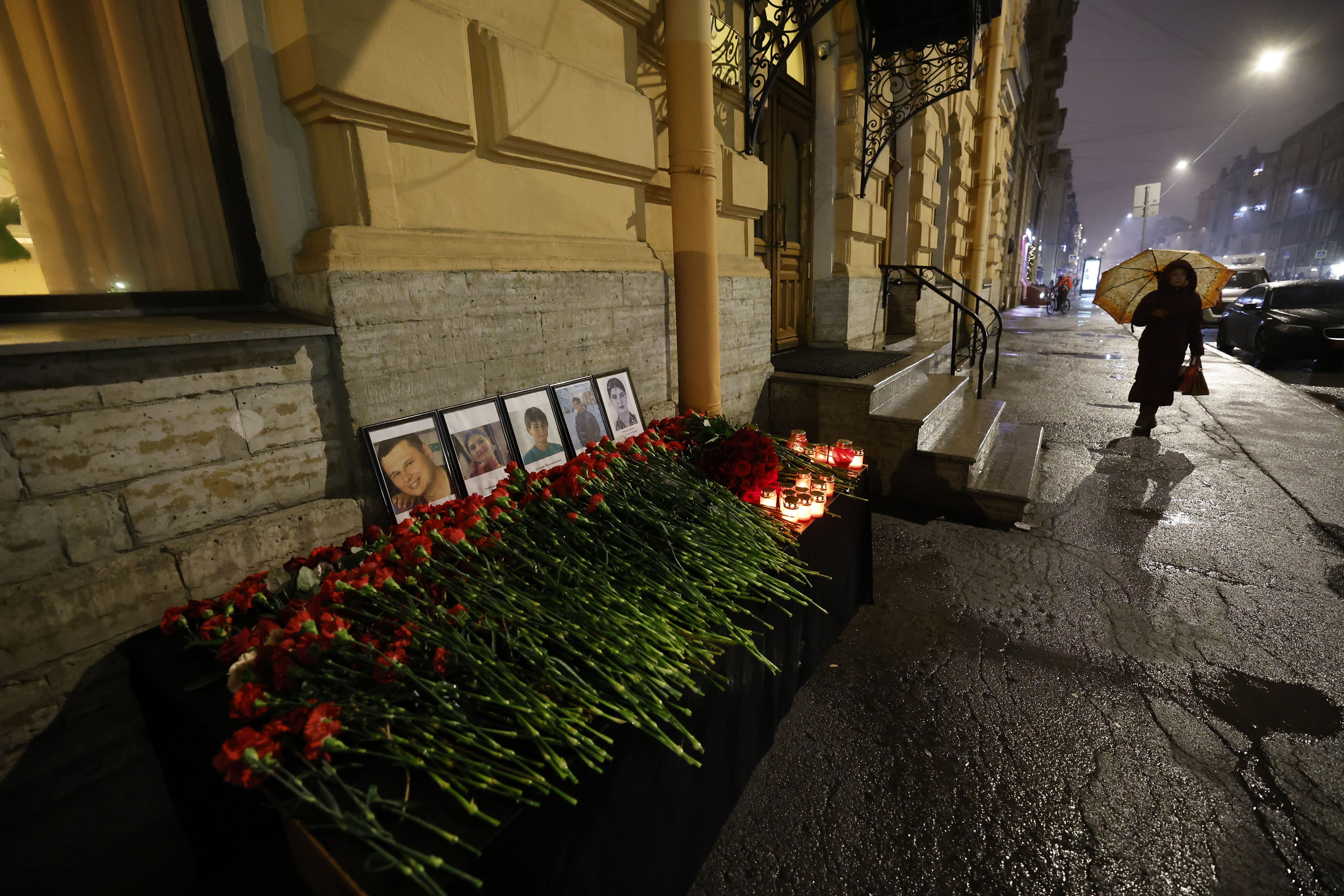 Candels, flowers and portraits are placed at the Consulate of Azerbaijan in the memory of victims of the Azerbaijan Airlines Embraer ERJ-190AR, that crashed near the Kazakh city of Aktau, in St. Petersburg, Russia, 26 December 2024. Azerbaijan Airlines Embraer ERJ-190AR passenger plane flying from Baku to Grozny crashed some three kilometres away from the Kazakh city of Aktau on 25 December. At least 29 people, including three minors, were rescued and hospitalized in medical institutions of Aktau, the Kazakhstan's Ministry for Emergency Situations said on 26 December, adding that 38 bodies were found at the site of the crash (Photo by Anatoly Maltsev/EPA)
