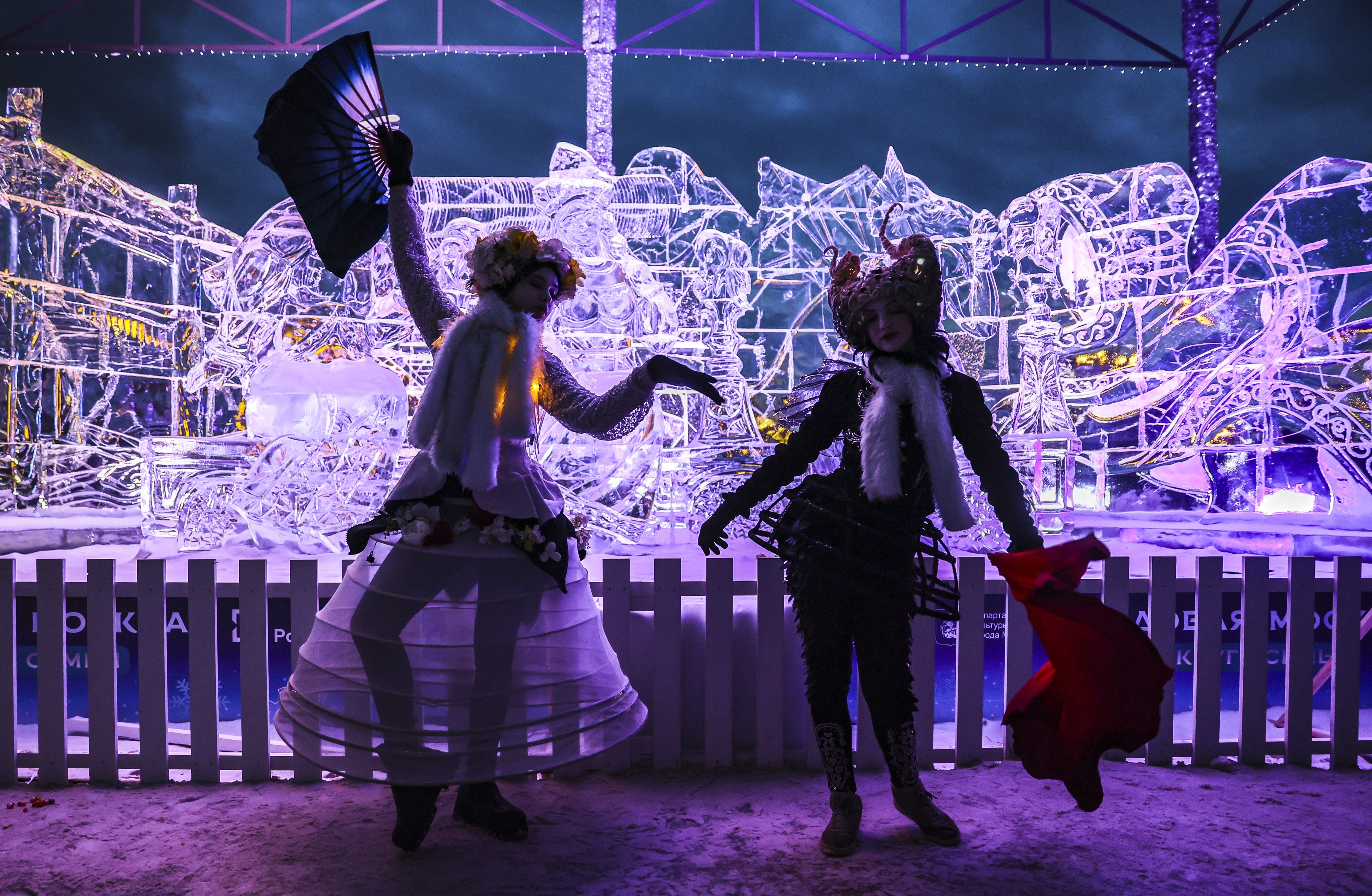 Actors perform during the ice sculptures festival “Ice Moscow” in Moscow, Russia, 06 January 2025. (Photo by Yuri Kochetkov/EPA/EFE)