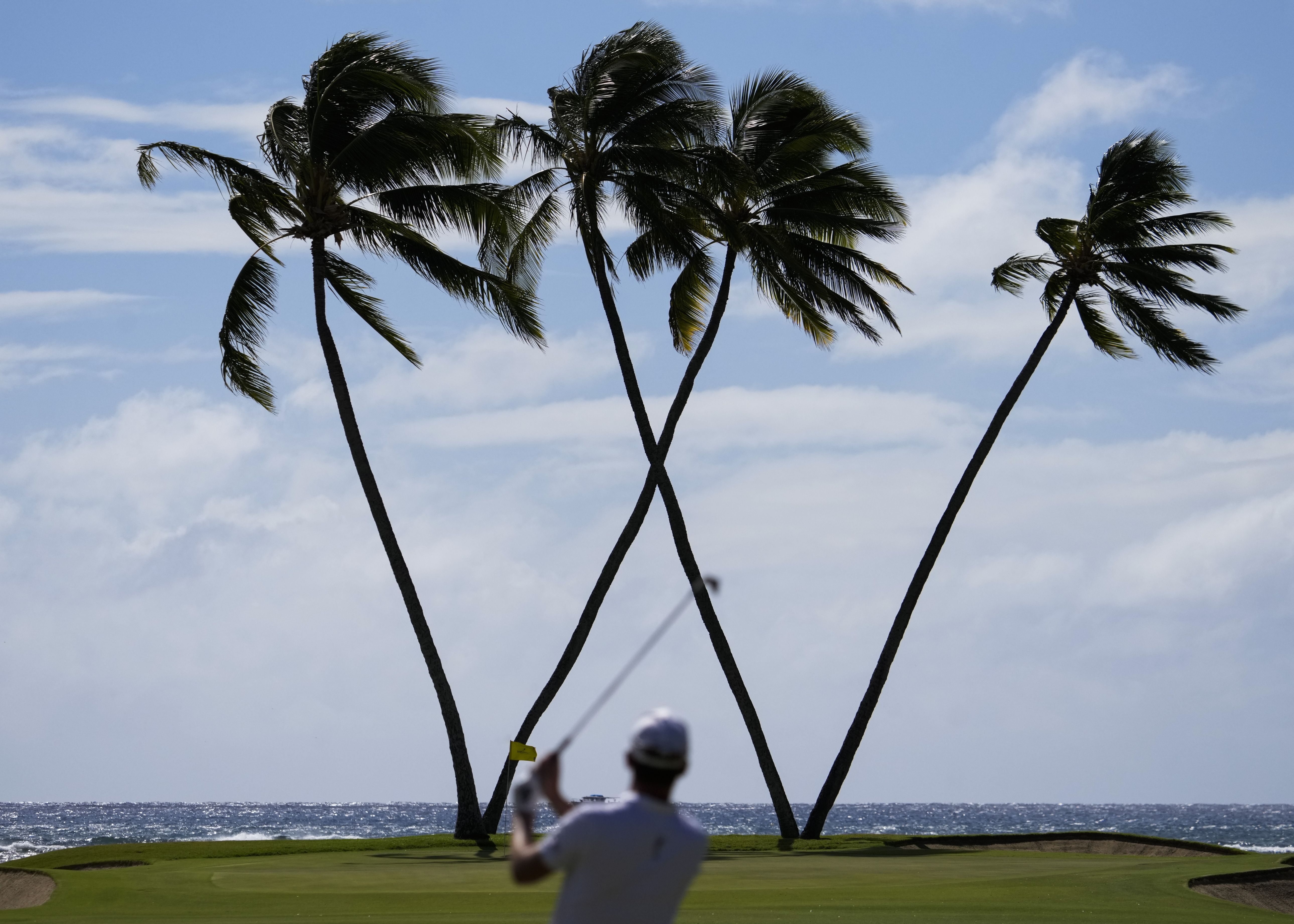 Andrew Putnam hits on the 16th hole during the final round of the Sony Open golf event, Sunday, January 12, 2025, at Waialae Country Club in Honolulu. (Photo by Matt York/AP Photo)