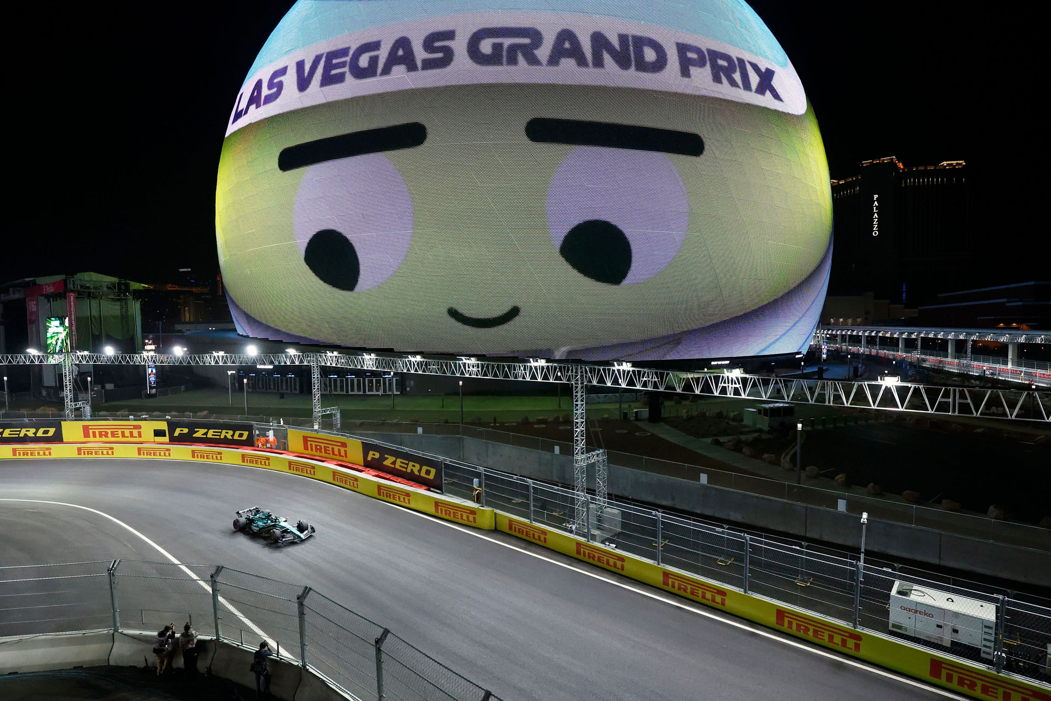 Aston Martin driver Lance Stroll of Canada in action during the second practice session for the F1 Las Vegas Grand Prix at the Las Vegas Strip Circuit in Las Vegas, Nevada, USA, 17 November 2023. (Photo by Caroline Brehman/EPA/EFE)