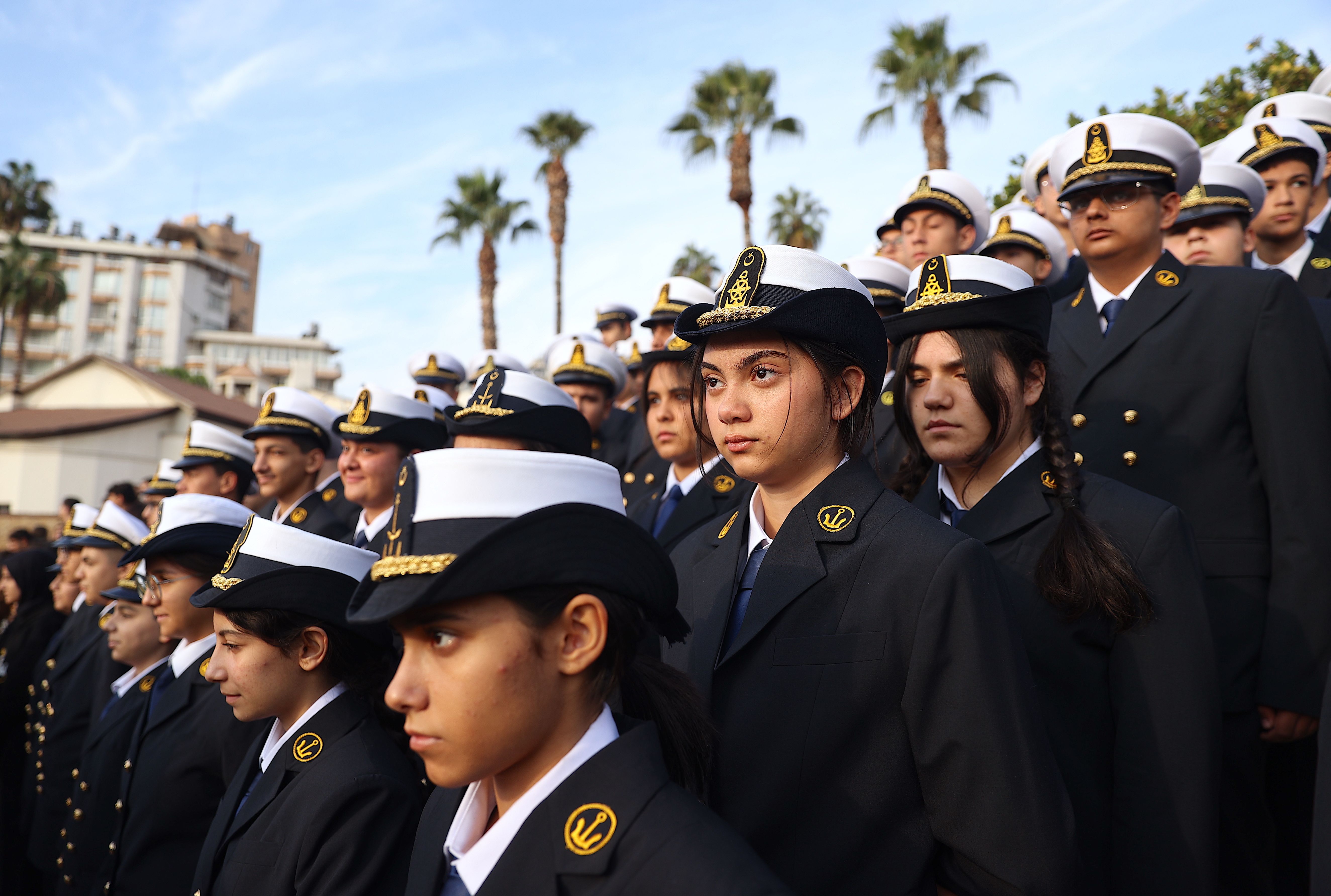 Children stand in silence at 09:05 a.m., the death time of Mustafa Kemal Ataturk, founder of the Republic of Turkiye, on the 86th anniversary of his demise in Mersin, Turkiye on November 10, 2024. (Photo by Serkan Avci/Anadolu via Getty Images)