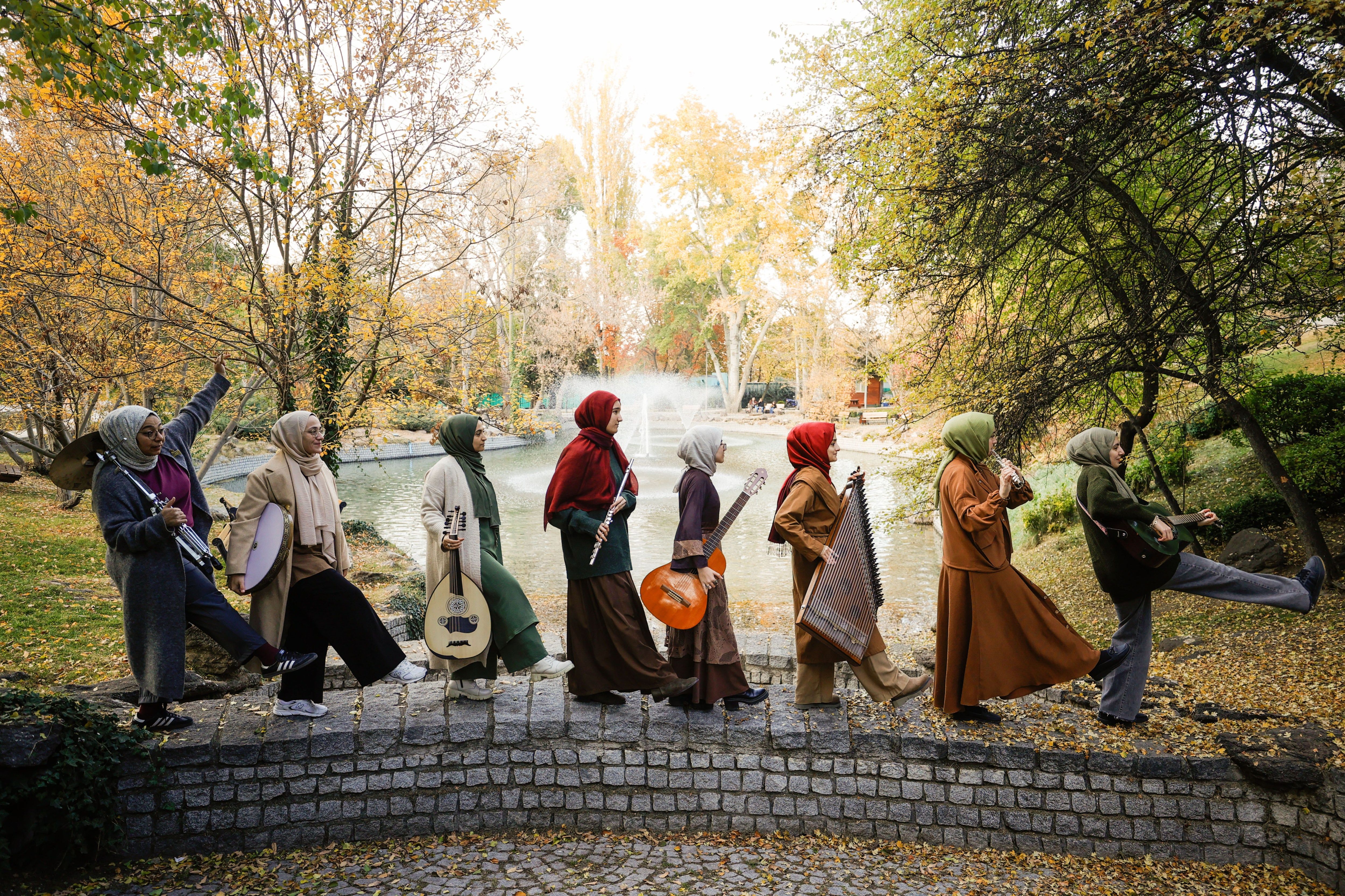 Members of Ankara Women's Orchestra, playing different instruments, are seen in Ankara, Turkiye on November 13, 2024.The orchestra, founded by 19 women of different ages and professions, gives concerts to female audiences with their wide repertoire in different languages and styles. (Photo by Esra Hacioglu Karakaya/Anadolu via Getty Images)