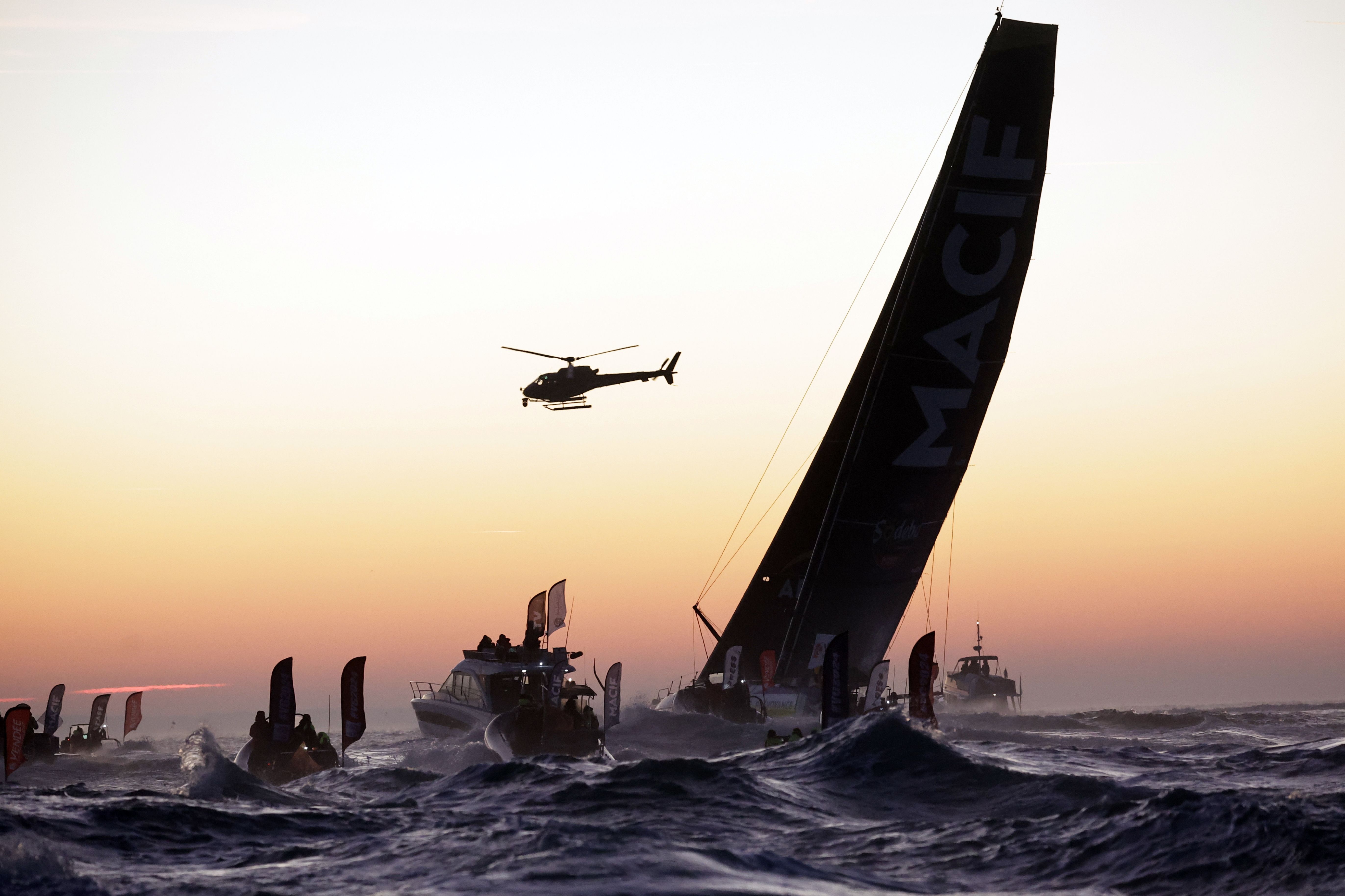 French skipper Charlie Dalin, who sailed his Macif Sante Prevoyance in the 2024/2025 of the Vendee Globe round-the-world solo sailing race in action before crossing the finish line and winning the race, at Les Sables d'Olonne, western France, 14 January 2025. (Photo by Christophe Petit Tesson/EPA)