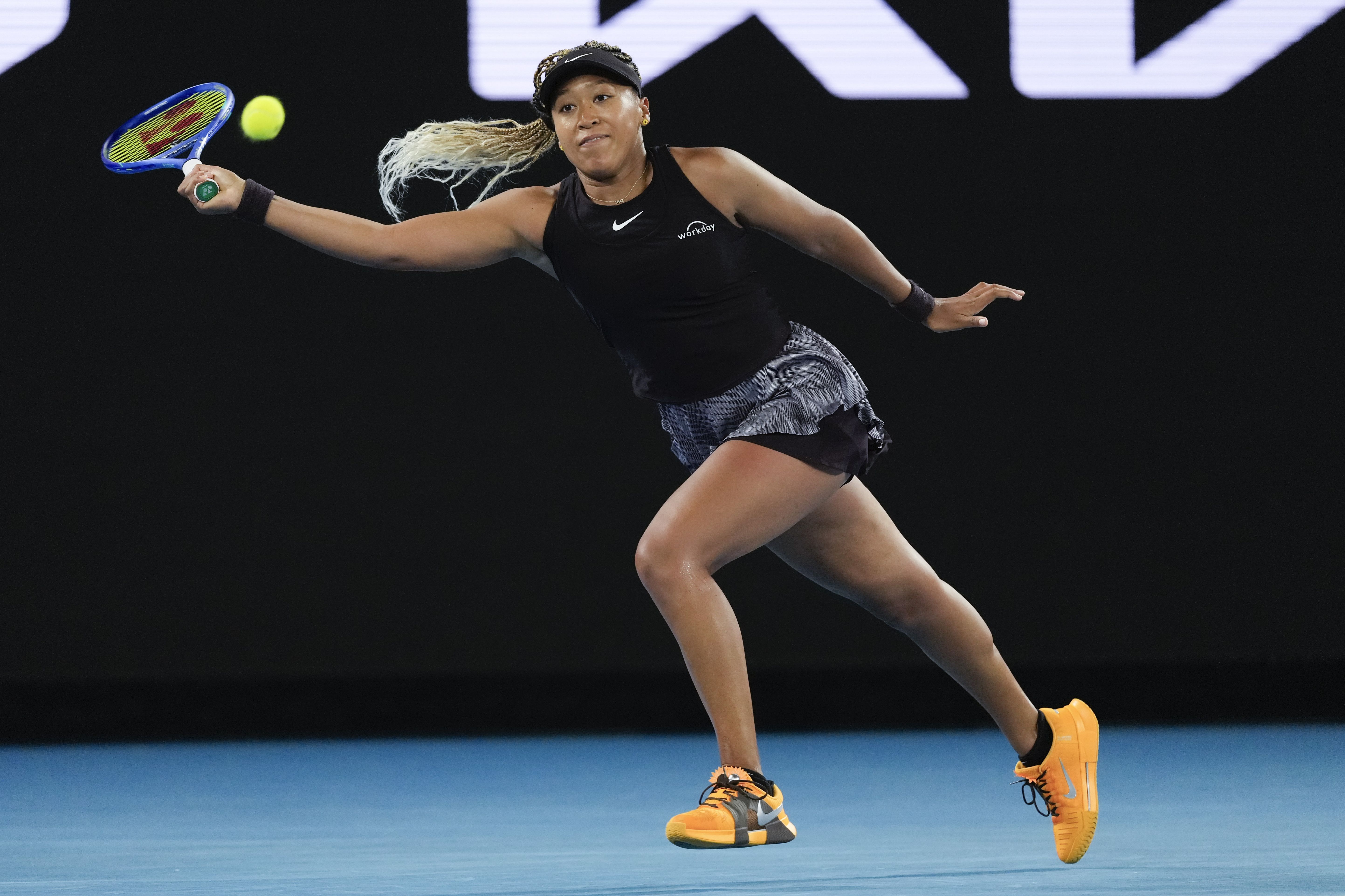 Naomi Osaka of Japan plays a forehand return to Caroline Garcia of France during their first round match at the Australian Open tennis championship in Melbourne, Australia, Monday, January 13, 2025. (Photo by Asanka Brendon Ratnayake/AP Photo)
