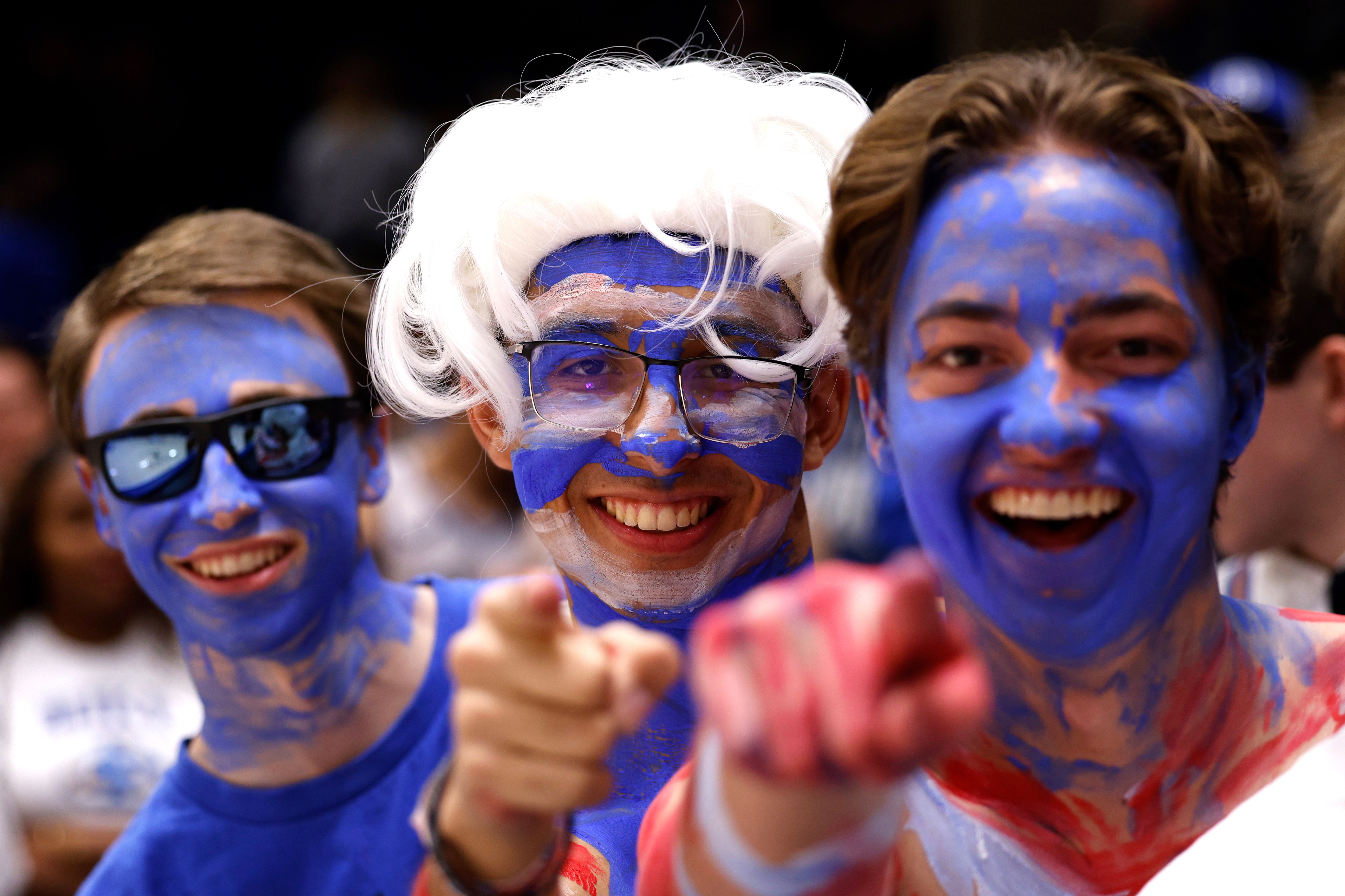 Cameron Crazies and fans of the Duke Blue Devils pose for a photo prior to the game against the Miami Hurricanes at Cameron Indoor Stadium on January 14, 2025 in Durham, North Carolina. (Photo by Lance King/Getty Images)