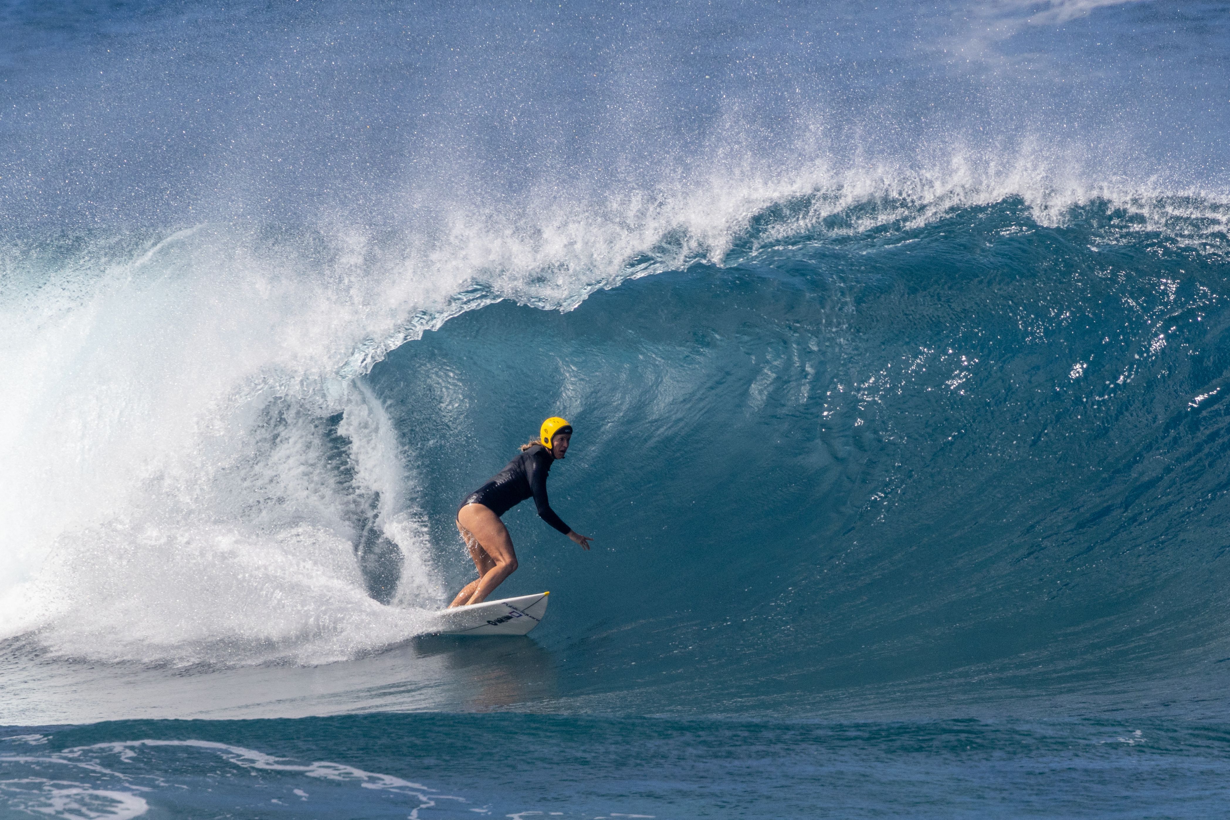 Bethany Hamilton rides a wave on the final day of the Da Hui Backdoor Shootout 2025 at Pipeline on the North Shore of Oahu, Hawaii, January 14, 2025. (Photo by Brian Bielmann/AFP Photo)