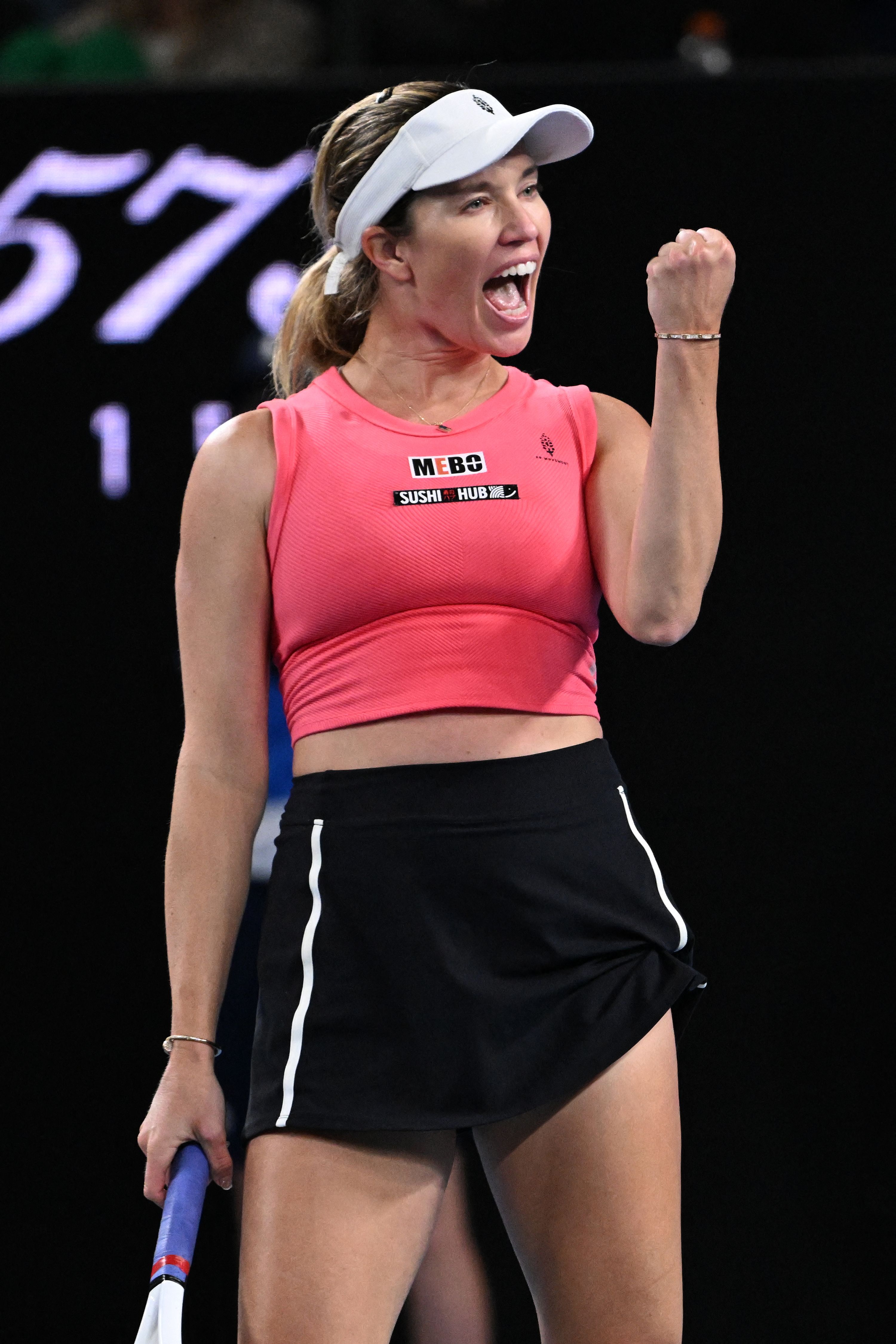 USA's Danielle Collins celebrates a point against Australia's Destanee Aiava during their women's singles match on day five of the Australian Open tennis tournament in Melbourne on January 16, 2025. (Photo by William West/AFP Photo)