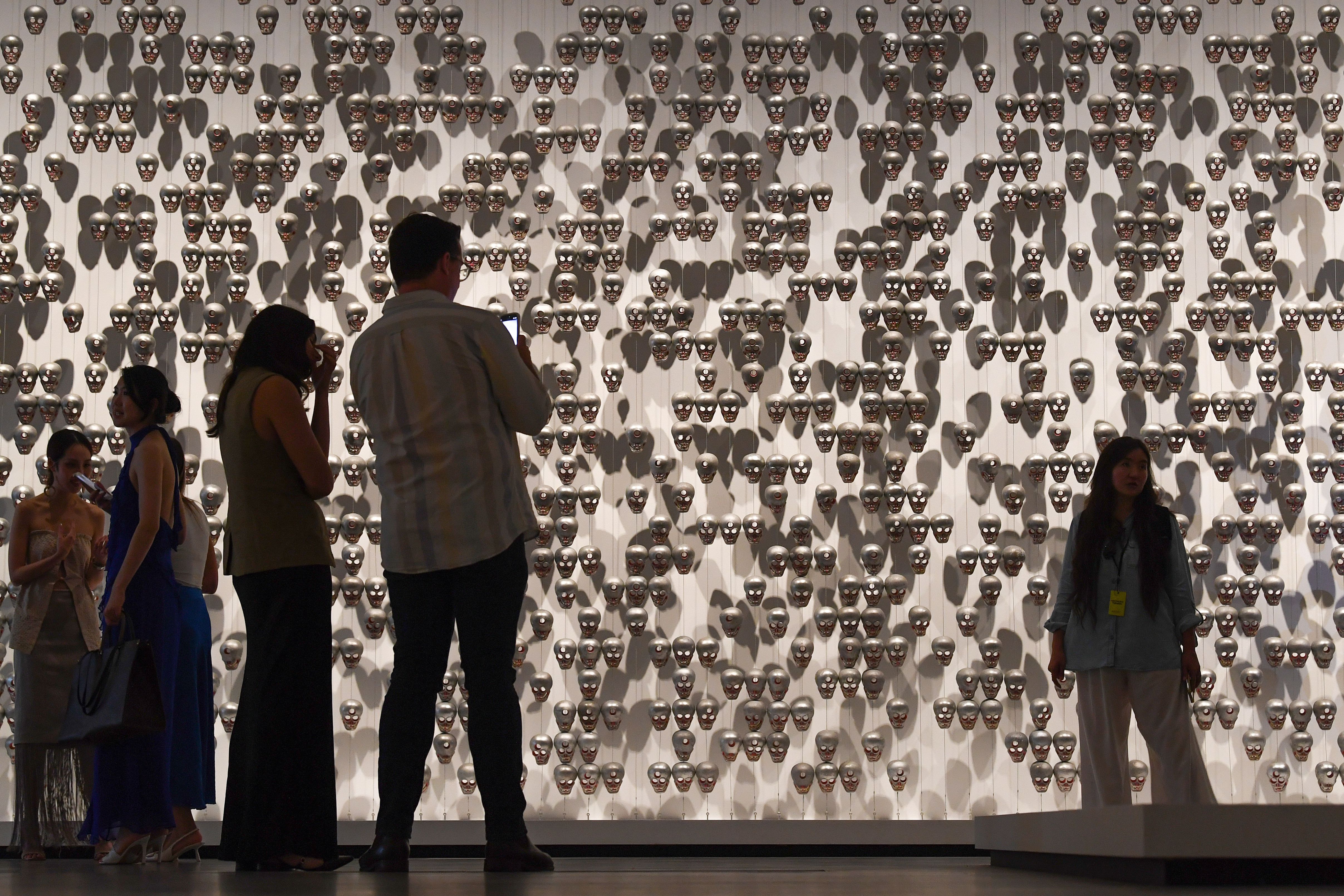 Artists showcase works during 11th Asia Pacific Triennial of Contemporary Art at Gallery of Modern Art in Brisbane, Friday, November 29, 2024. The 11th Asia Pacific Triennial of Contemporary Art is showcasing seventy artists, collectives and projects from over thirty countries. (Photo by Jono Searle/AAP Image)