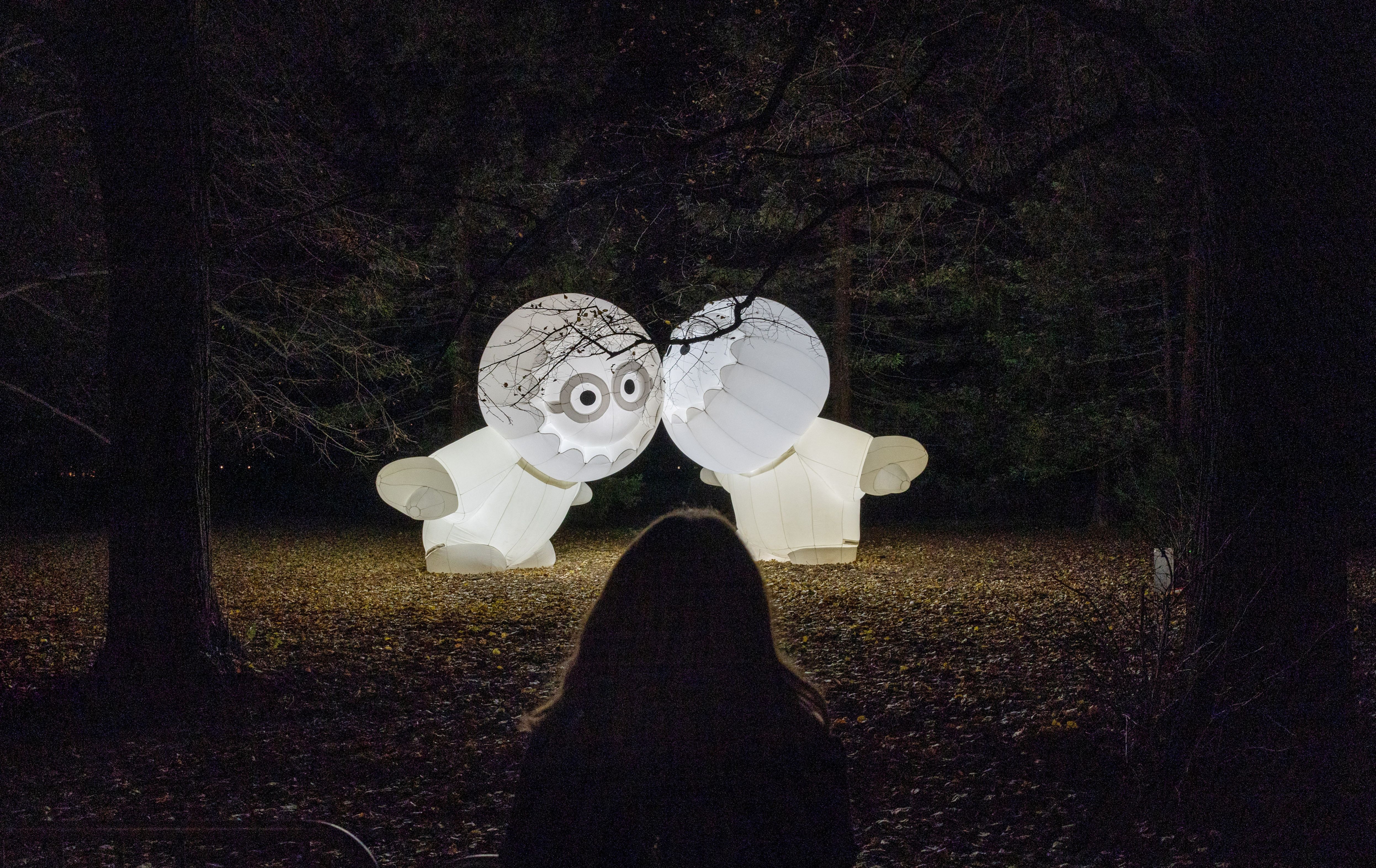 A person watches the art installation “Les Snooki, retour a Lyon” by Moetu Batlle and David Passegand during the festival of lights (Fetes des Lumieres) in Lyon, France on December 4, 2024. (Photo by Denis Balibouse/Reuters)