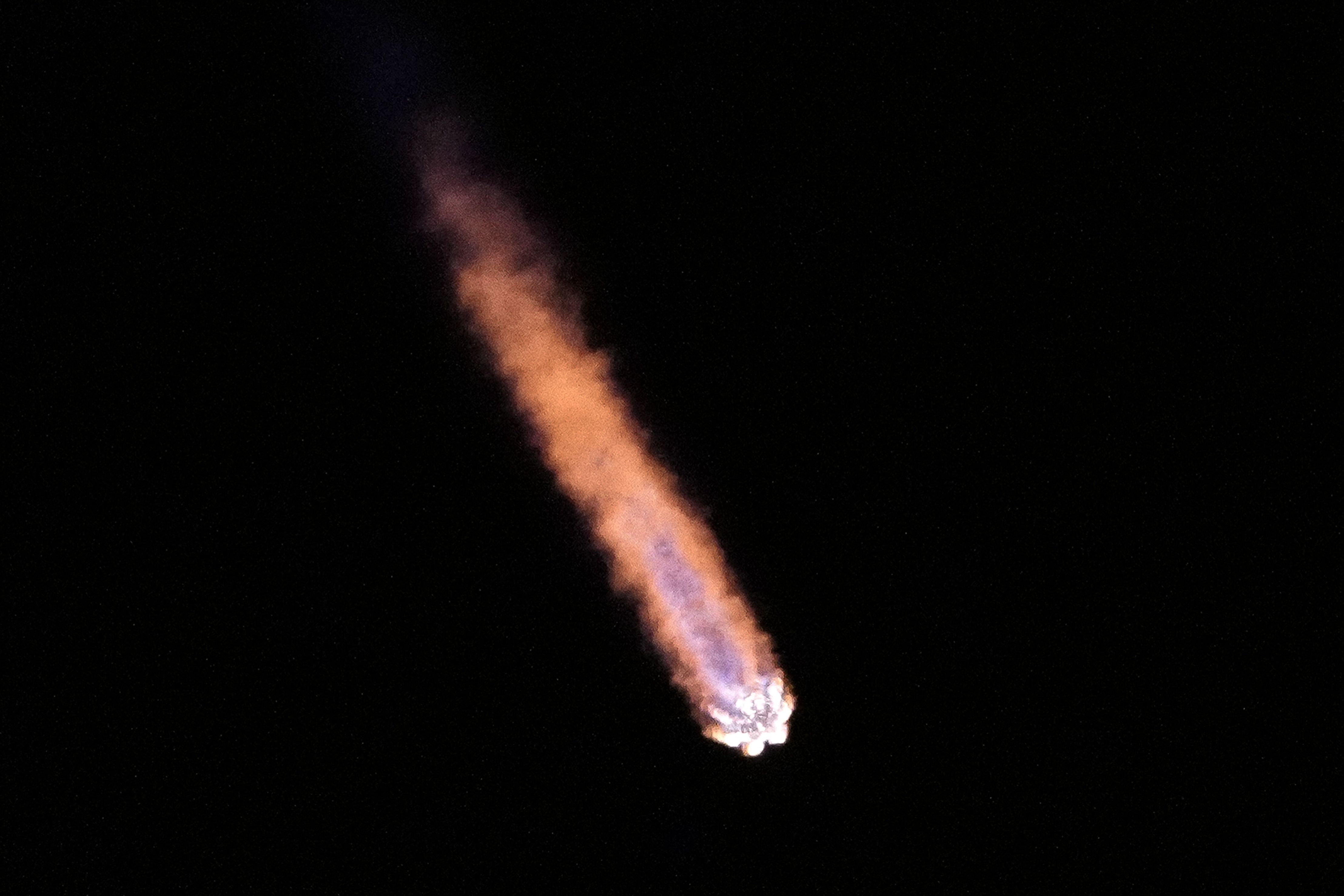 A SpaceX Falcon 9 rocket is seen in the sky after launching with a payload of a pair of lunar landers at the Kennedy Space Center in Cape Canaveral, Fla., Wednesday, January 15, 2025. (Photo by John Raoux/AP Photo)