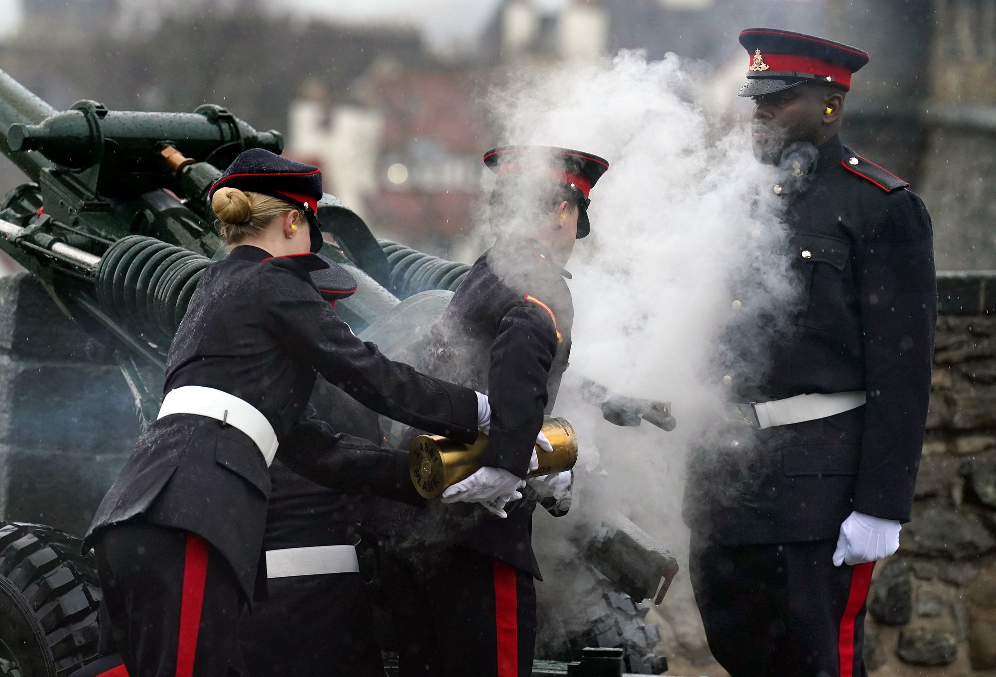 16 Regiment Royal Artillery fire a 21 Gun salute at Edinburgh Castle to mark the 75th birthday of King Charles III on Tuesday, November 14, 2023. (Photo by Andrew Milligan/PA Images via Getty Images)