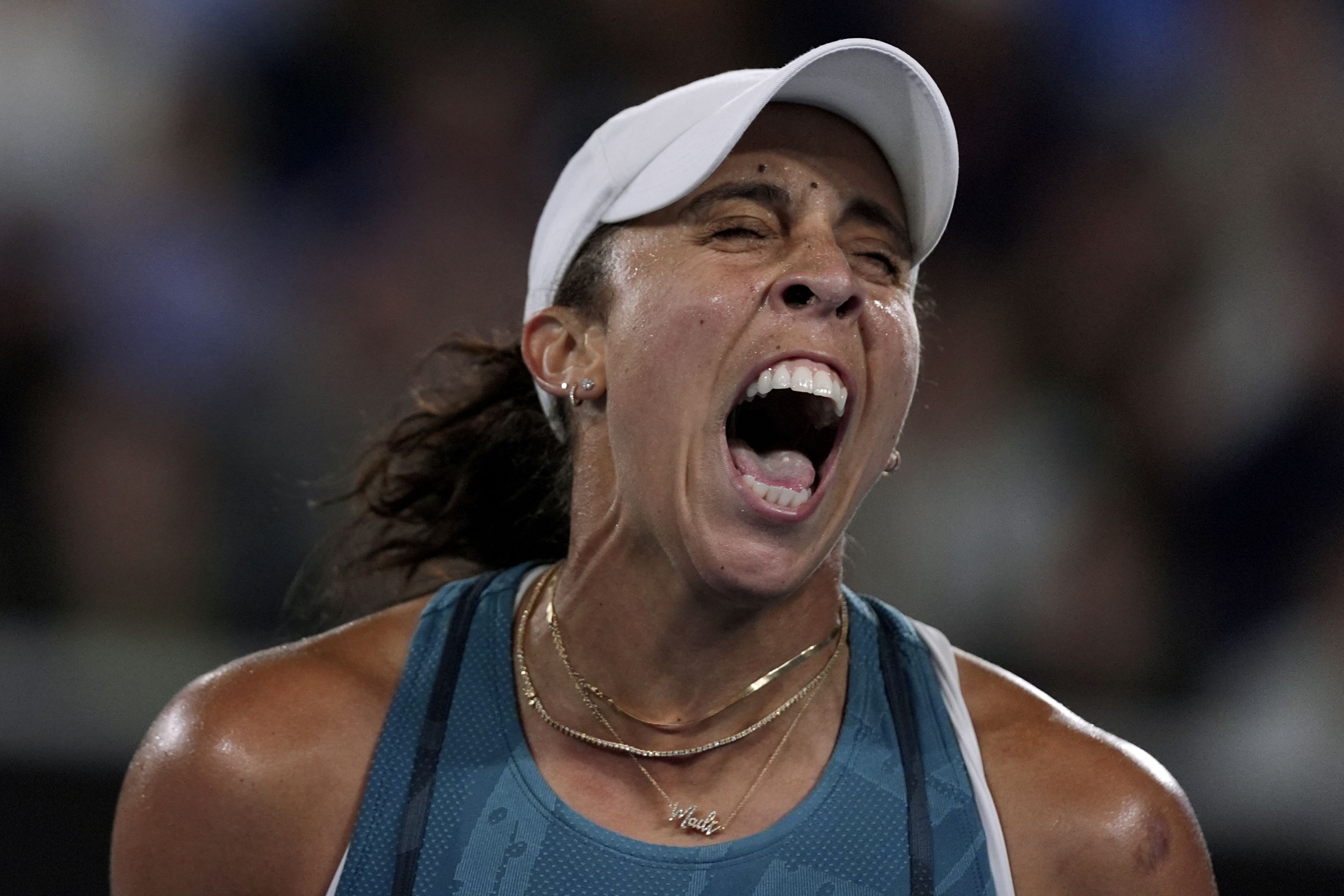 Madison Keys of the U.S. reacts after winning a point against Elena-Gabriela Ruse of Romania during their second round match at the Australian Open tennis championship in Melbourne, Australia, Thursday, January 16, 2025. (Photo by Ng Han Guan/AP Photo)