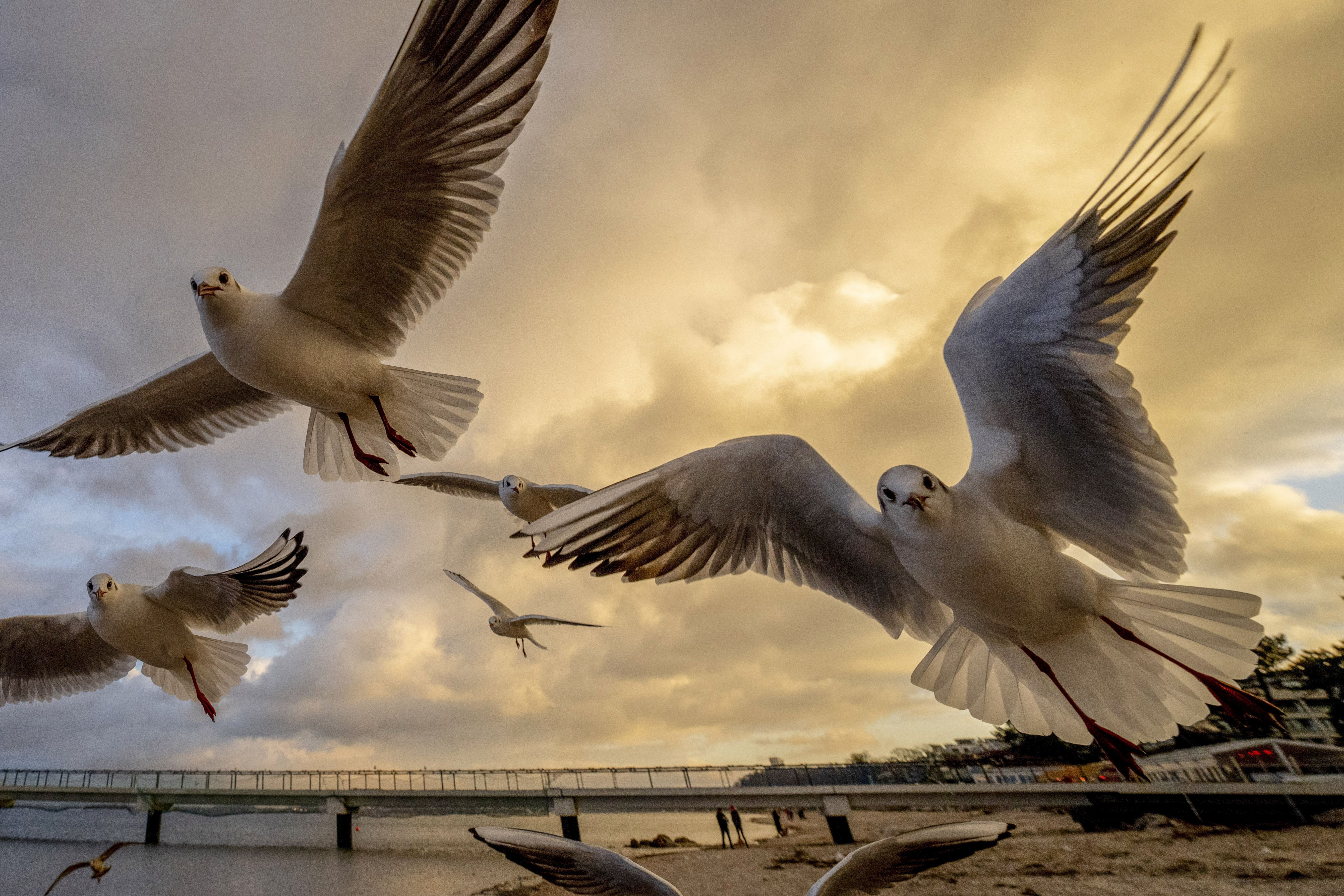 Seagulls fly near the Baltic Sea in Scharbeutz, northern Germany, Friday, January 10, 2025. (Photo by Michael Probst/AP Photo)