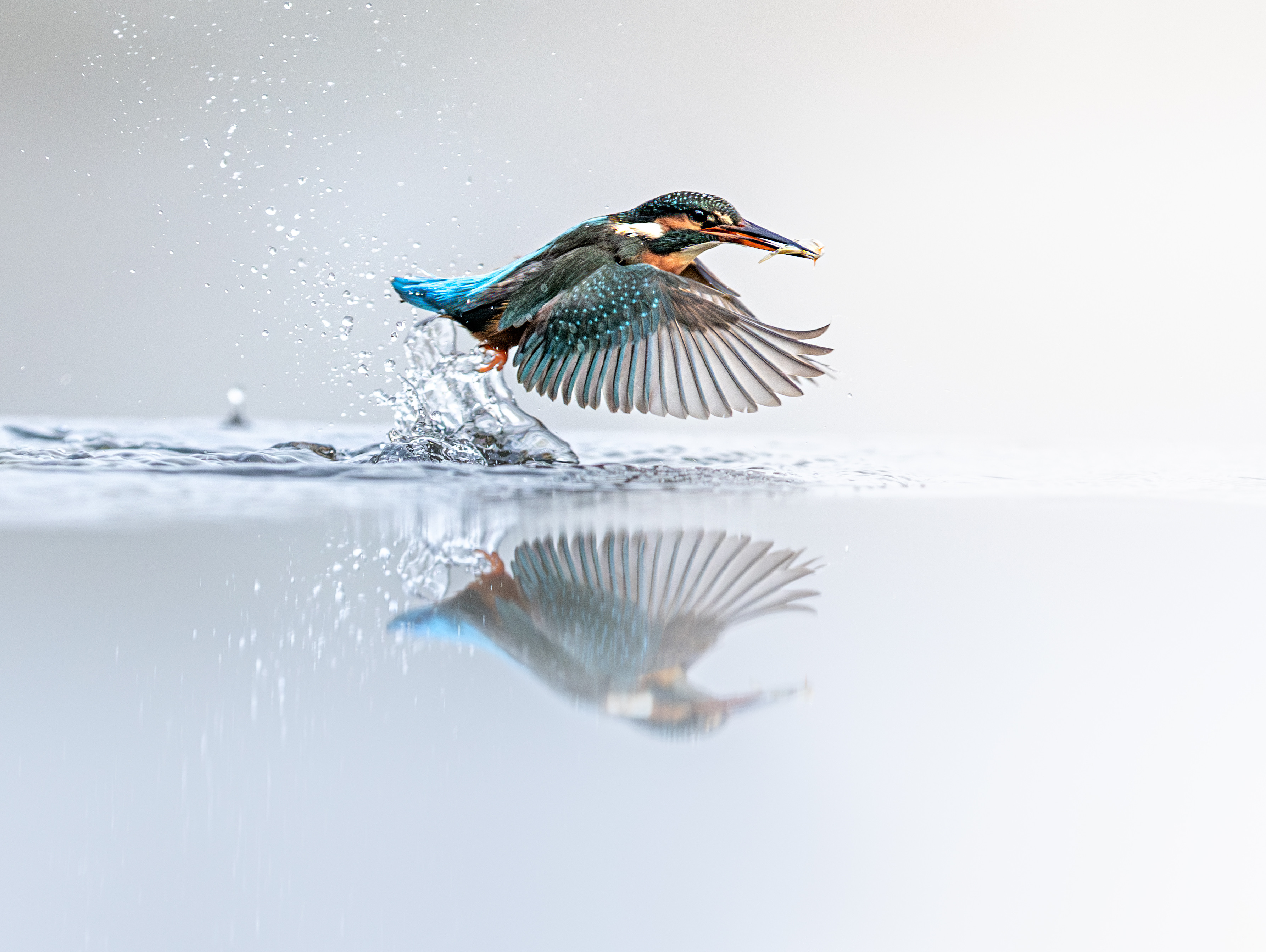 The pictured dated January 15, 2025 shows a Kingfisher swooping to catch a fish at Teddesley Park in Stafford, UK. Kingfishers hunt fish from riverside perches, flying low and occasionally hovering above the water's surface. They ae often spotted darting along a riverbank or waiting patiently on a branch for their next meal to swim by. (Photo by 8TT Photography/Bav Media)