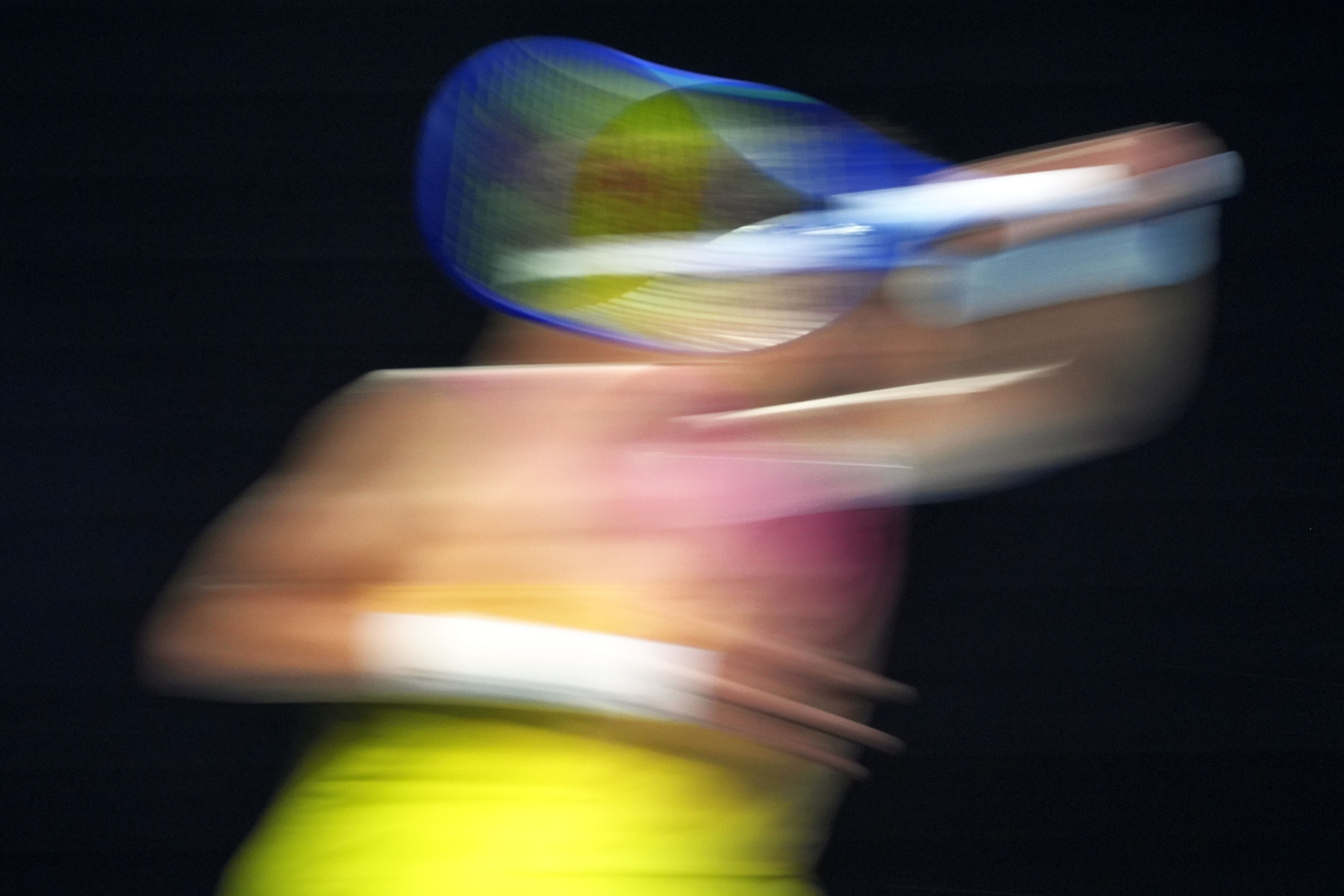 Ben Shelton of the U.S. plays a backhand return to Jannik Sinner of Italy during their semifinal match at the Australian Open tennis championship in Melbourne, Australia, Friday, January 24, 2025. (Photo by Asanka Brendon Ratnayake/AP Photo)