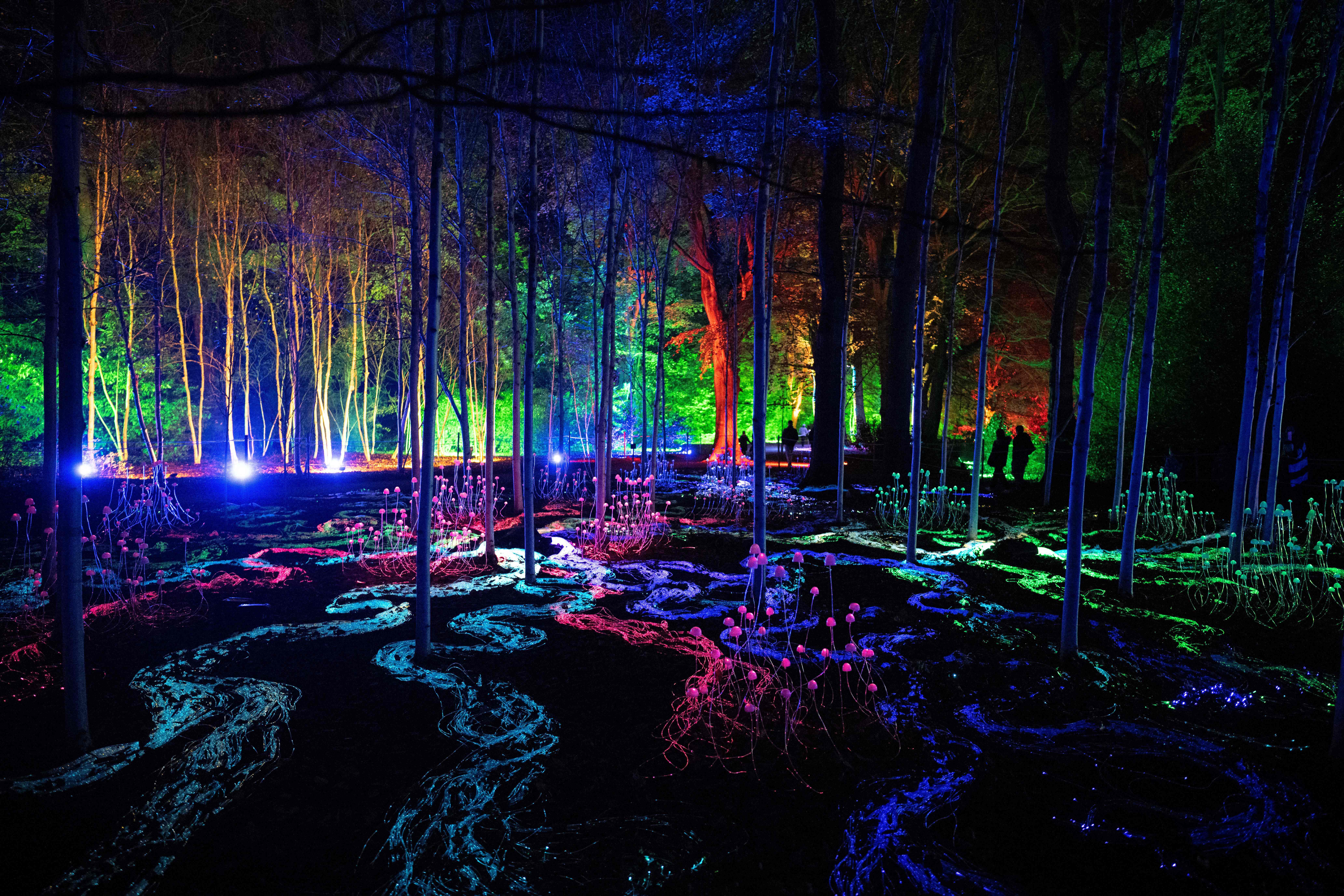 Members of the public experience an artwork entitled “Mycelium” on the “Christmas at Dunham Massey” festive light art trail at the National Trust property near Altrincham, northeast England, on November 16, 2023. Dunham Massey, a historic stately home surrounded by gardens and a 300-acre deer park, is hosting their seventh annual Christmas light trail through the gardens which runs until New Year's Eve. (Photo by Oli Scarff/AFP Photo)