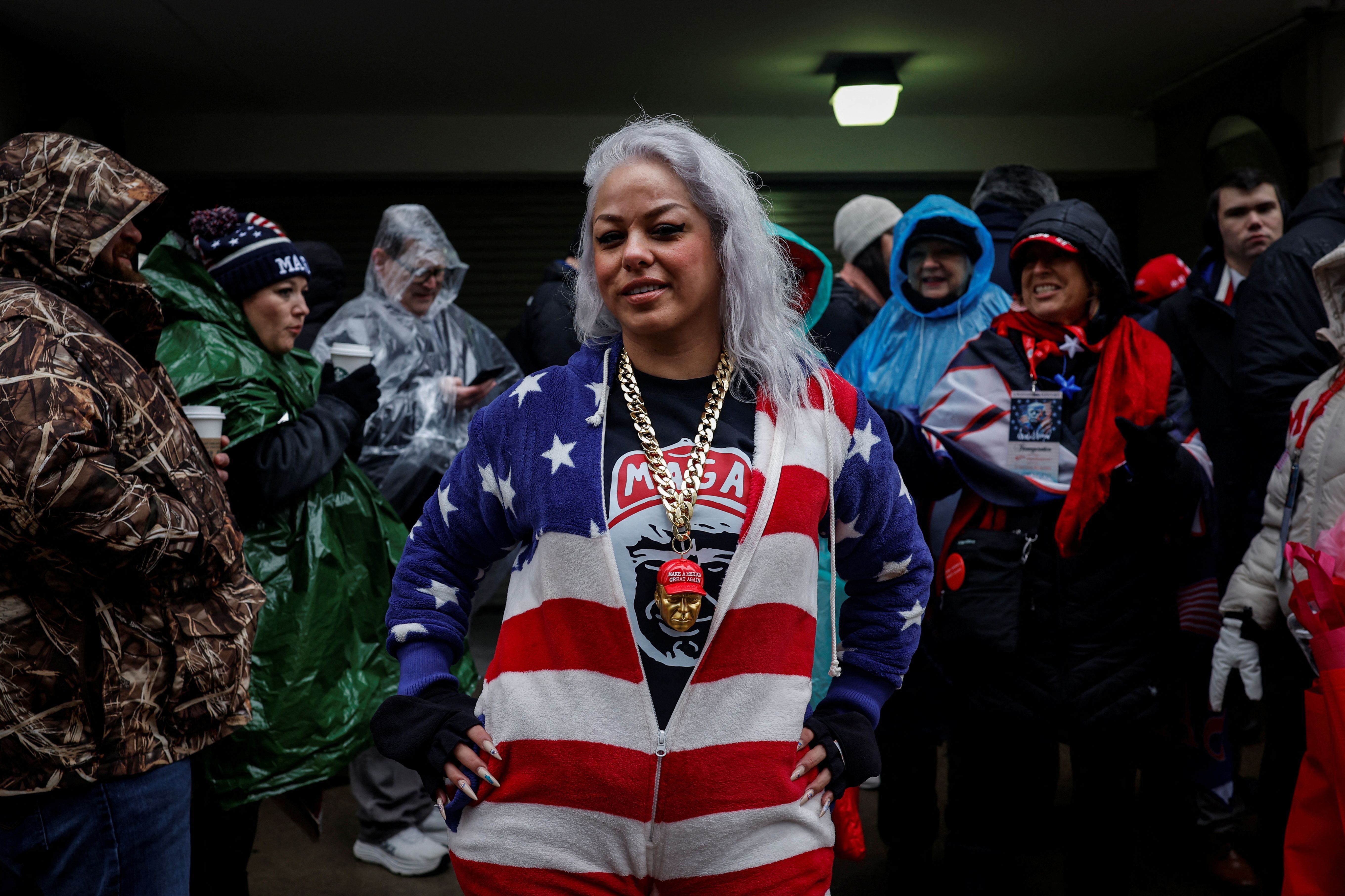 Rubia Rangel, 40, stands as she waits outside Capital One Arena, ahead of a rally for U.S. President-elect Donald Trump the day before he is scheduled to be inaugurated for a second term, in Washington, U.S., January 19, 2025. “I really do hope that in this term that Trump secures our border”, said Rangel. (Photo by Amanda Perobelli/Reuters)