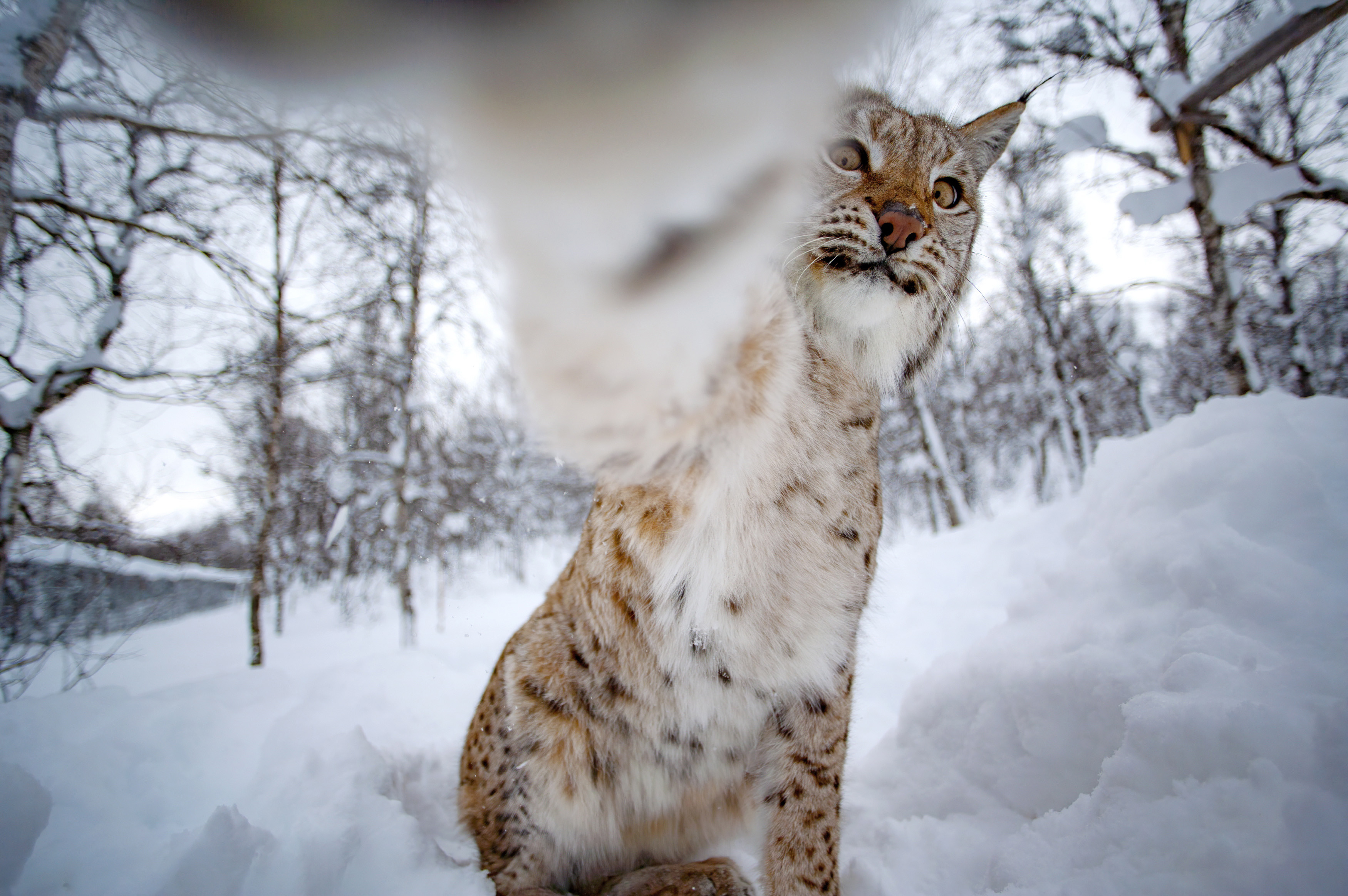 A lynx in a wintry forest investigates a remote camera in the last decade of January 2025. Four lynx were recently illegally released into the Cairngorms, in the Scottish Highlands, and were rescued by the Royal Zoological Society of Scotland, although one subsequently died. (Photo by Brian Matthews/Solent News)