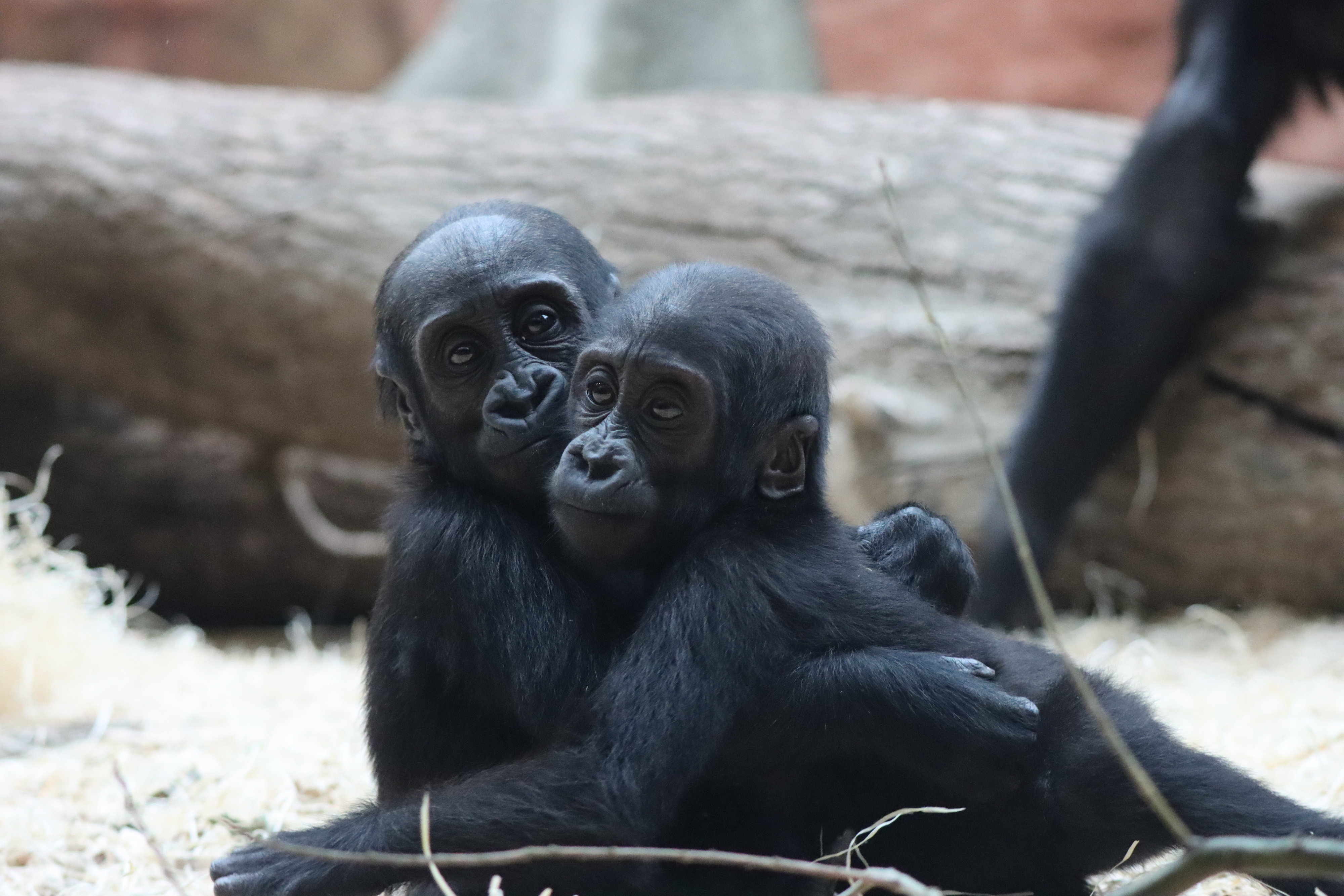 Baby gorilla sisters, Mobi and Gaia in Prague Zoo on January 20, 2025. Adorable pictures show baby gorilla sisters meeting for the first time. The two sisters, Mobi and Gaia – who were born within four months of each other – share the same father but a different mother. (Photo by South West News Service)