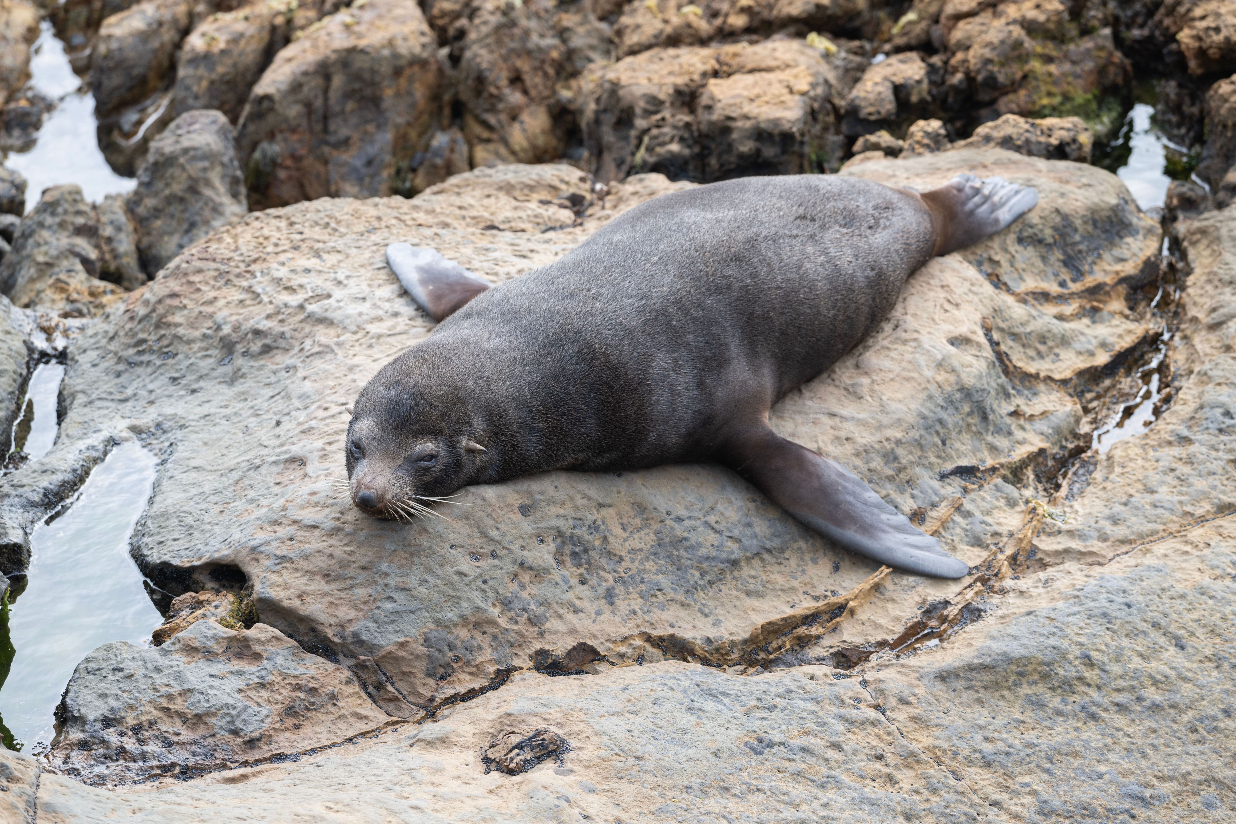 A fur seal rests at Shag Point in coastal Otago, New Zealand, on January 21, 2025. (Photo by Sanka Vidanagama/NurPhoto/Rex Features/Shutterstock)