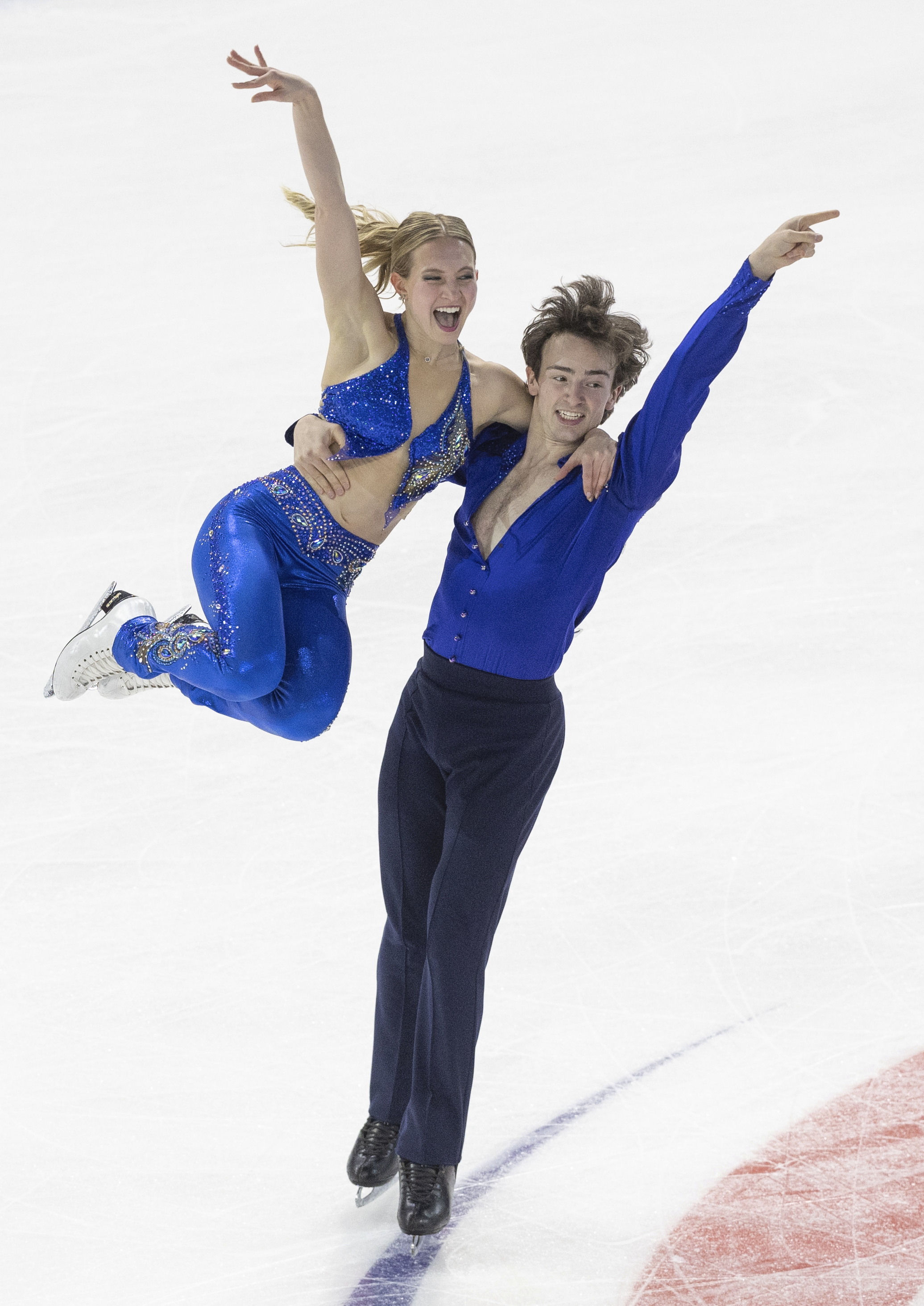 Eva Pate, left, and Logan Bye, right, perform during the ice dance rhythm dance competition at the U.S. figure skating championships Friday, January 24, 2025, in Wichita, Kan. (Photo by Travis Heying/AP Photo)