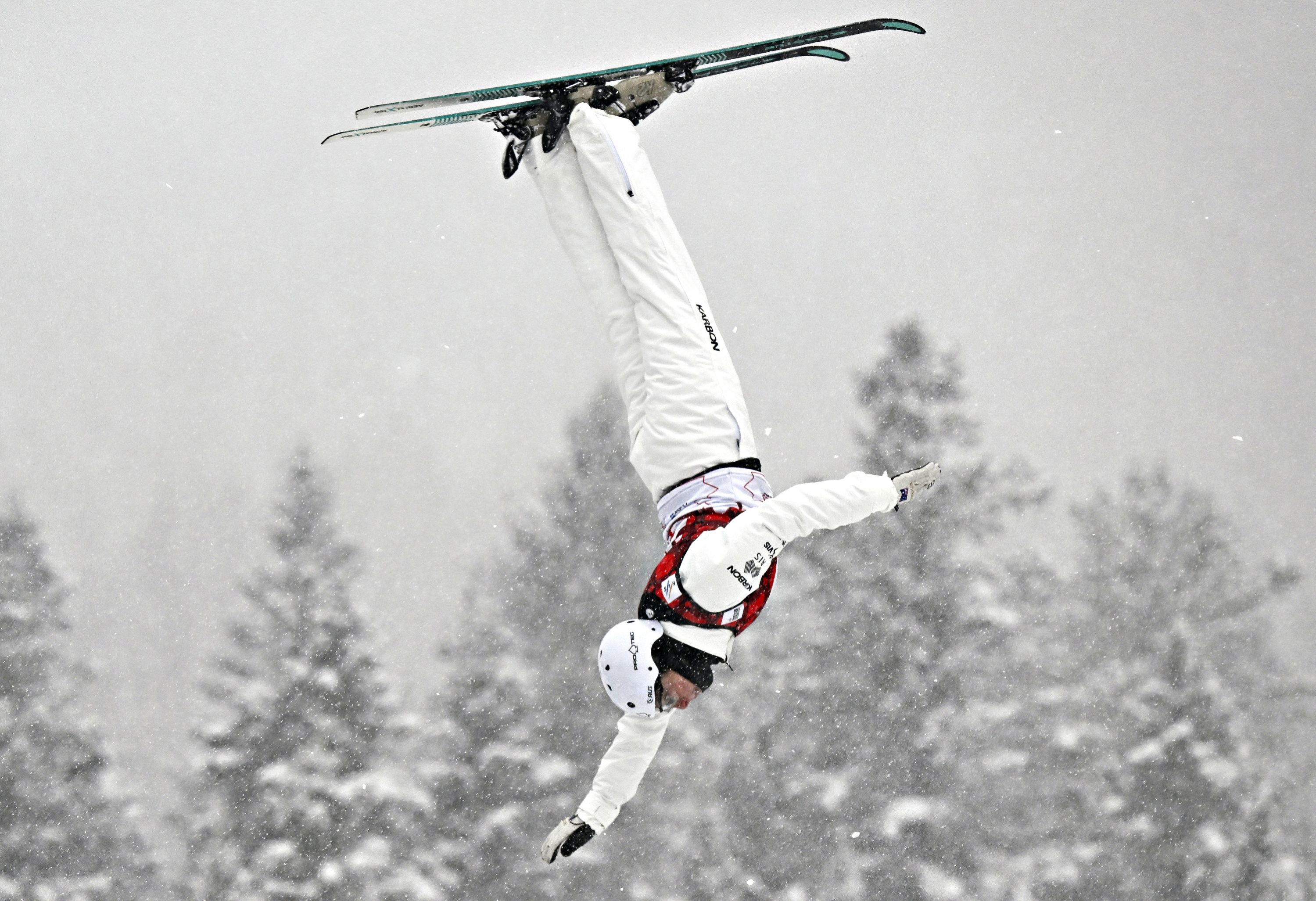 Airleigh Frigo, of Australia, jumps in the women's aerials Sunday, January 26, 2025, at the FIS freestyle world cup aerials in Lac-Beauport, Quebec. (Photo by Jacques Boissinot/The Canadian Press via AP Photo)