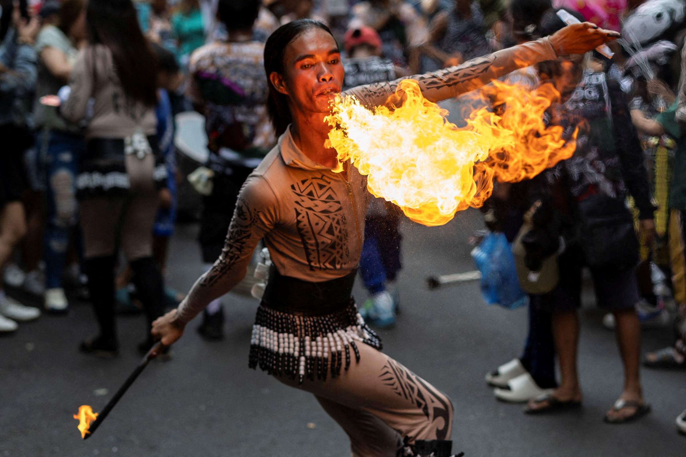 A dancer blows fire during Lunar New Year celebrations in Binondo, Manila, Philippines, on January 29, 2025. (Photo by Eloisa Lopez/Reuters)