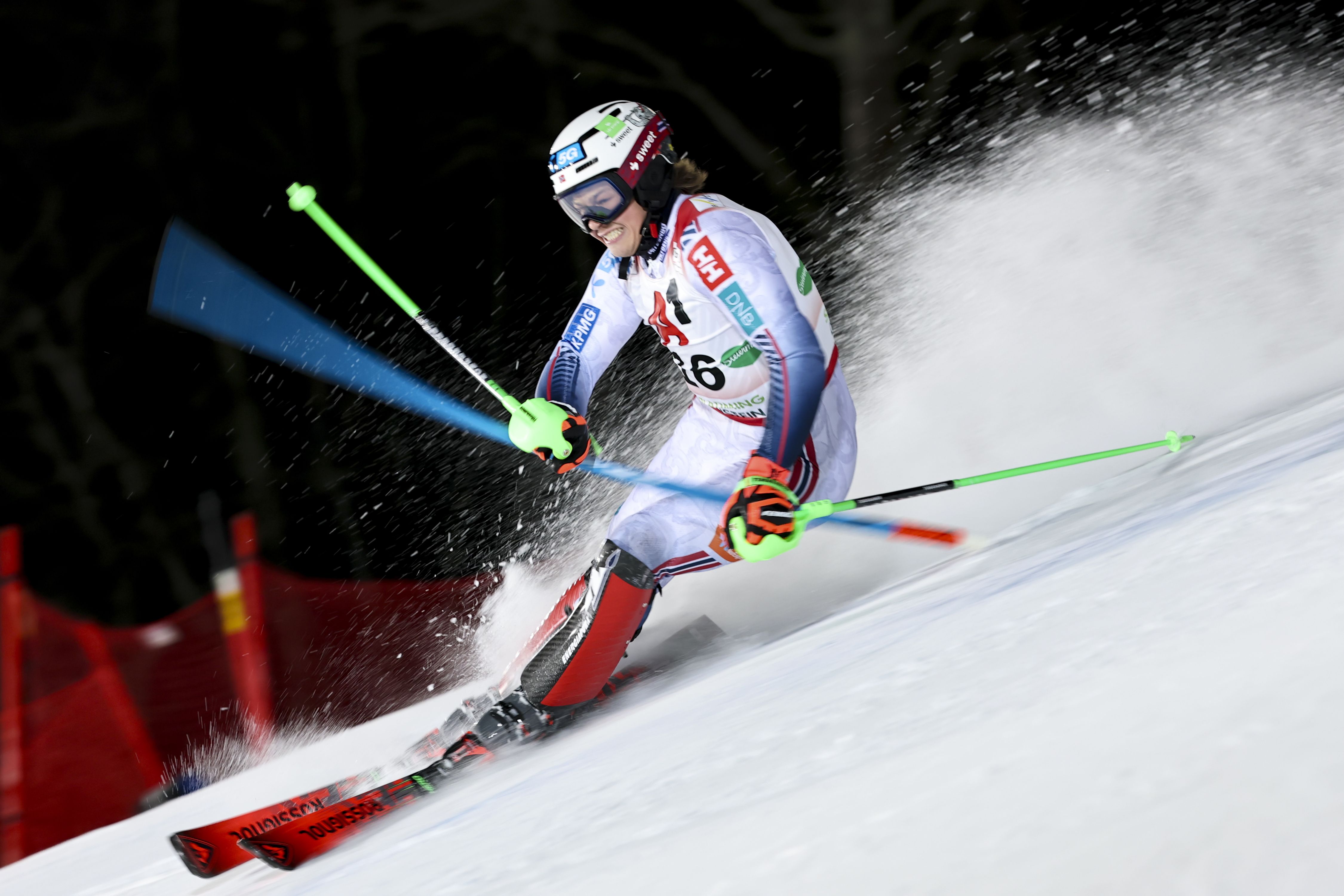 Norway's Alexander Steen Olsen competes during an alpine ski, men's World Cup slalom, in Schladming, Austria, Wednesday, January 29, 2025. (Photo by Marco Trovati/AP Photo)
