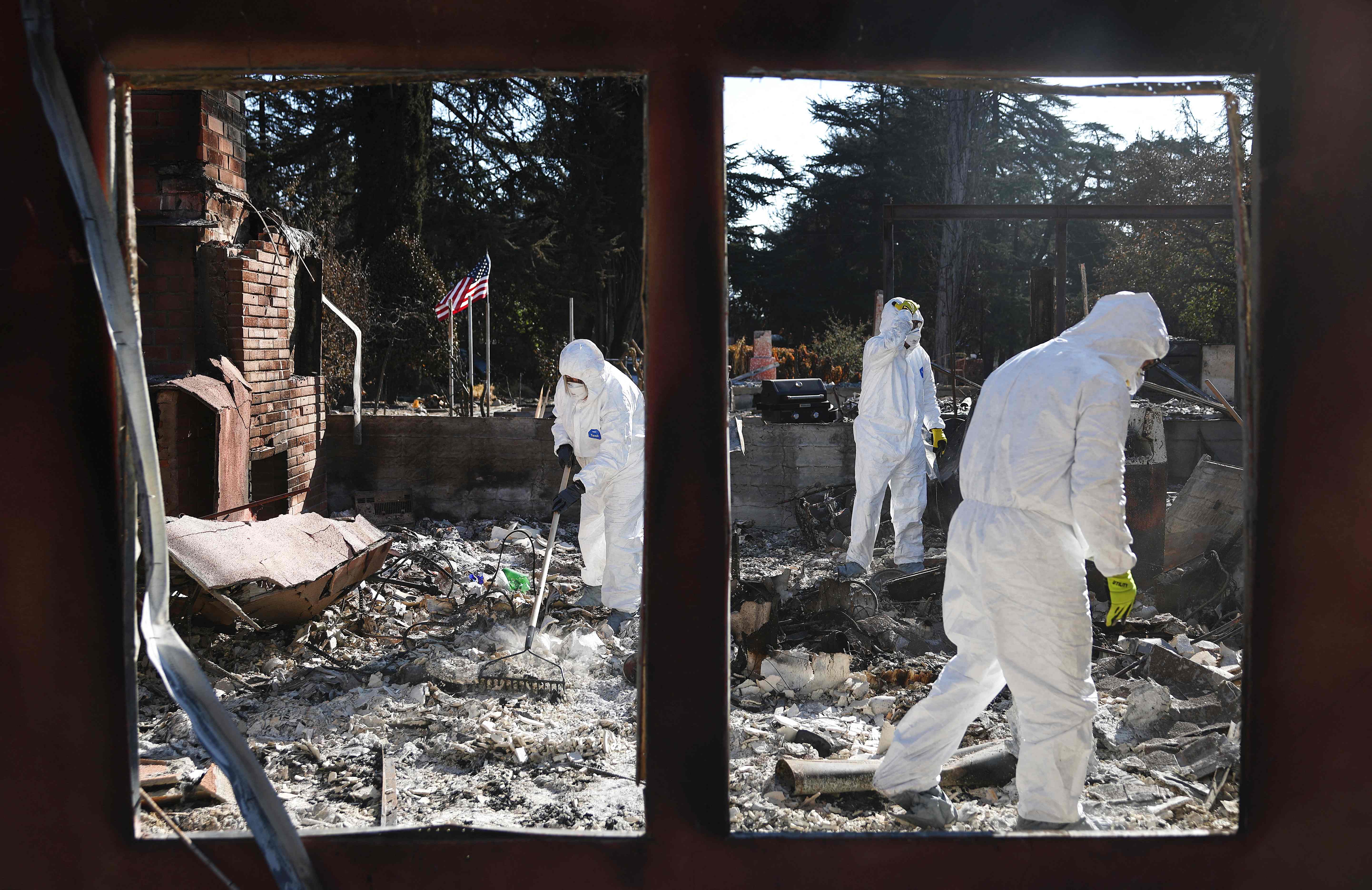 Nick Sonnenberg and his parents search for personal items to recover from the remains of his apartment which burned in the Eaton Fire on January 25, 2025 in Altadena, California. Multiple wildfires fueled by intense Santa Ana Winds burned across Los Angeles County leaving at least 28 dead with over 180,000 people having been under evacuation orders. Over 12,000 structures, many of them homes and businesses, burned in the Palisades and Eaton Fires. President Donald Trump surveyed wildfire damage yesterday and pledged to 'open the coffers' for federal aid to California. (Photo byu Mario Tama/Getty Images/AFP Photo)