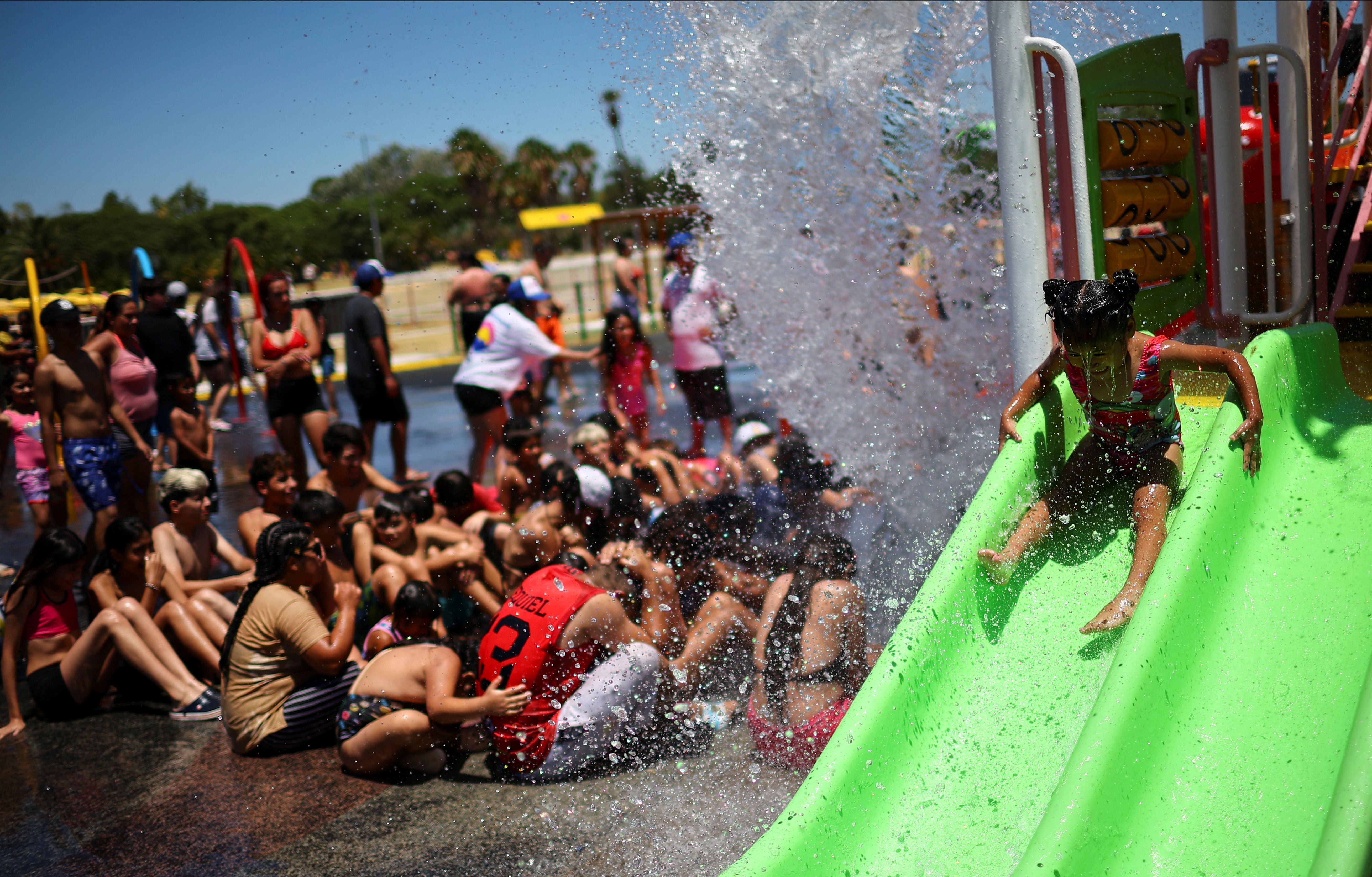 A girl enjoys the day in a public water park amid the first heatwave of the 2024/2025 summer season, in Buenos Aires, Argentina on January 15, 2025. (Photo by Agustin Marcarian/Reuters)
