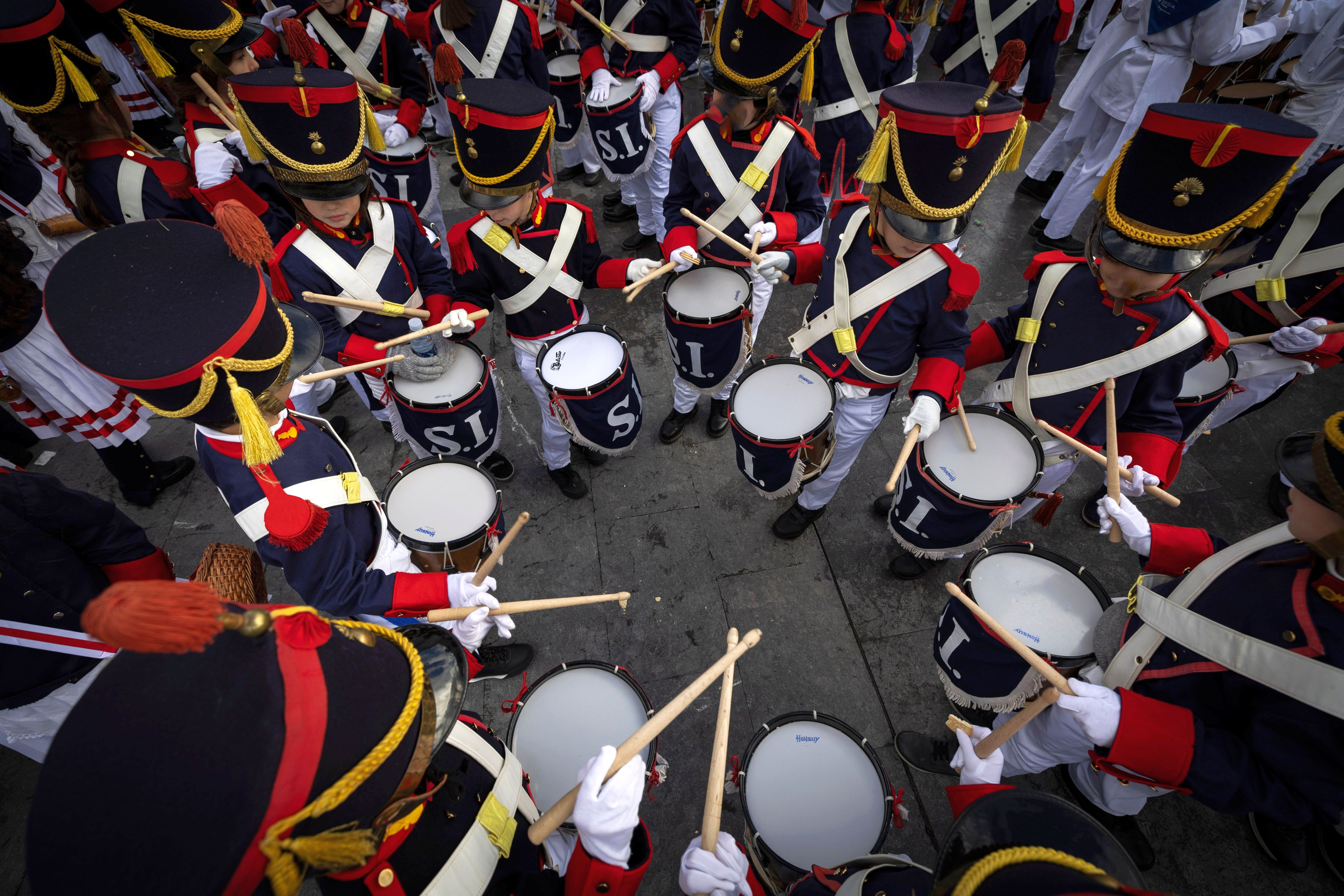 Participants of the “Tamborrada” festival play their drums in San Sebastian, Basque Country, northern Spain, 20 January 2025. Some 22,700 adults and 4,600 children took part in the festivity, which takes place every year on 20 January to honor the town's patron, Saint Sebastian. (Photo by Javier Etxezarreta/EPA/EFE)