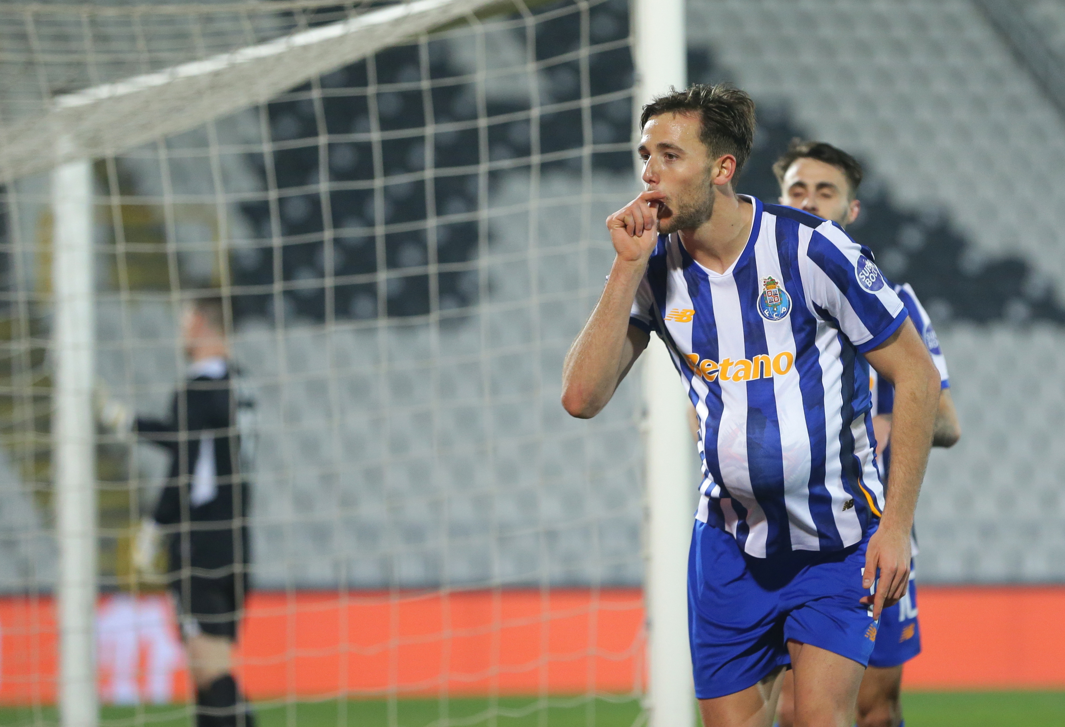 Porto's Nico Gonzalez celebrates after scoring the 0-1 lead during the UEFA Europa League match between Maccabi Tel Aviv and FC Porto in Belgrade, Serbia, 30 January 2025. (Photo by Andrej Cukic/EPA)
