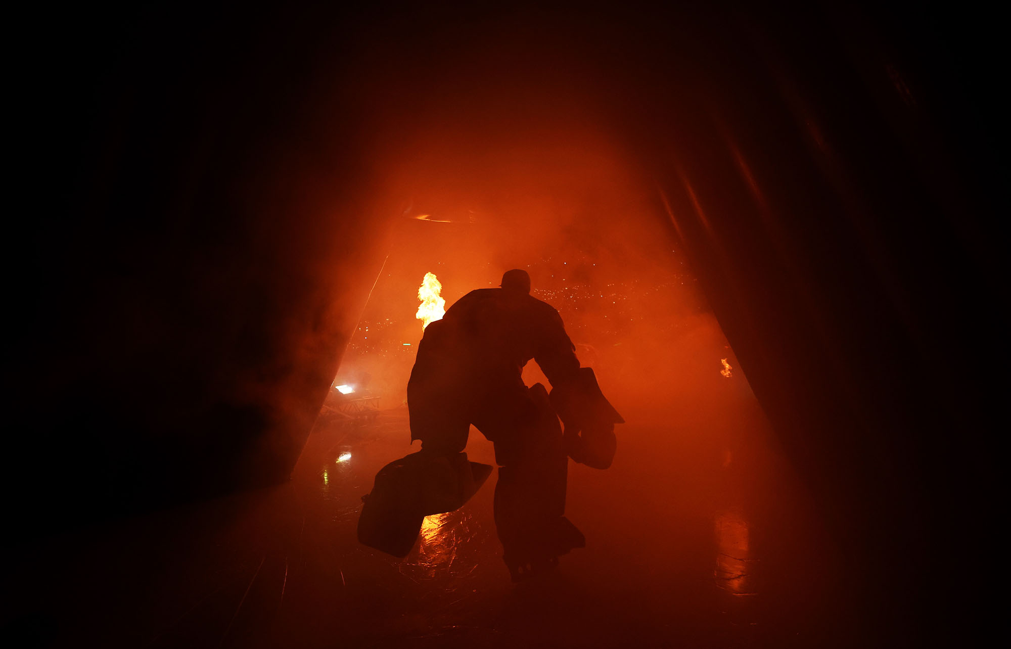Goalkeeper Henrik Haukeland of Düsseldorf attends the ice during the Penny DEL match between Düsseldorfer EG and Kölner Haie at PSD Bank Dome on January 24, 2025 in Duesseldorf, Germany. (Photo by Lars Baron/Getty Images)