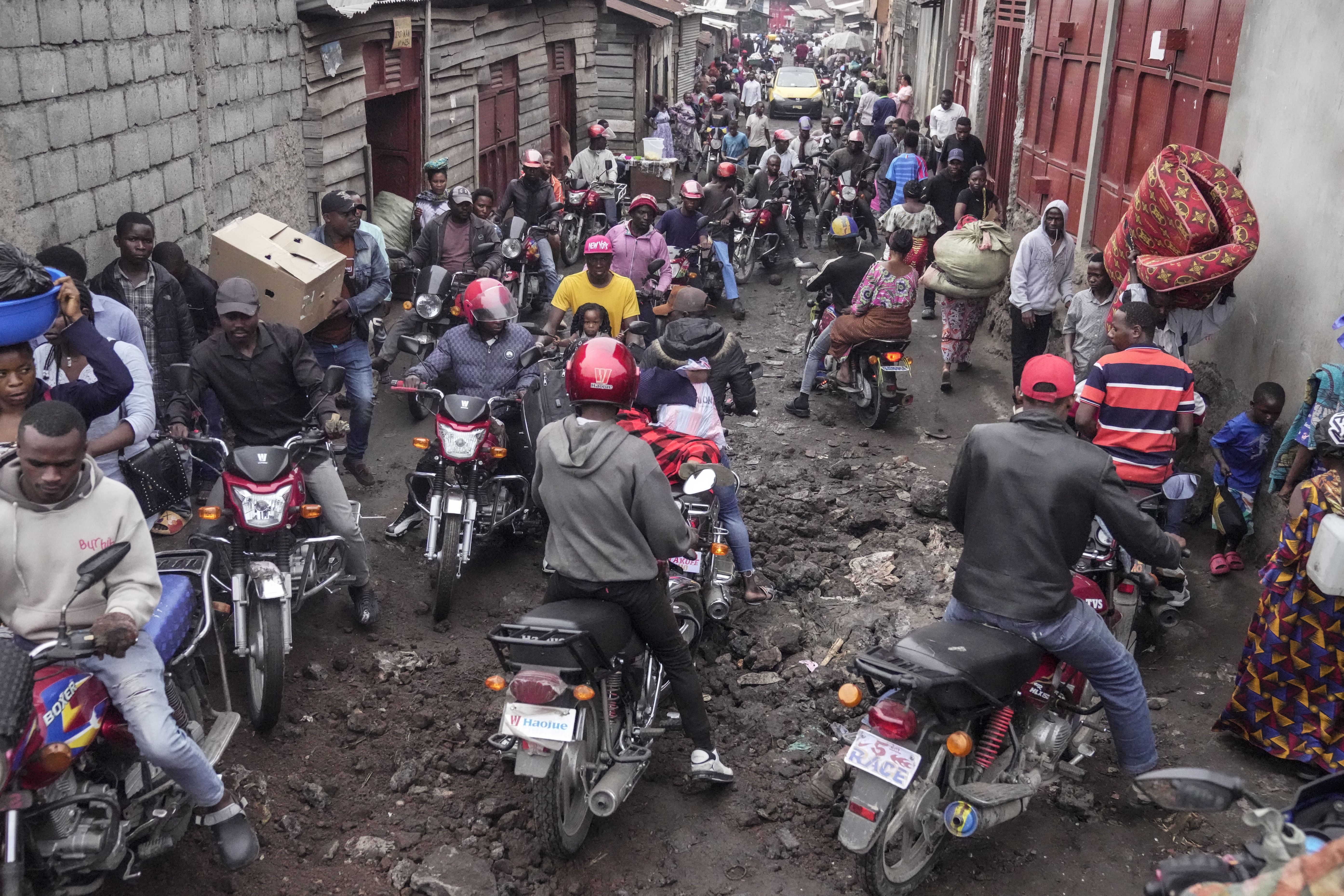 People rush to shop in downtown Goma, Congo Thursday, January 30, 2025, after the M23 rebels advanced into eastern Congo's capital Goma. (Photo by Brian Inganga/AP Photo)