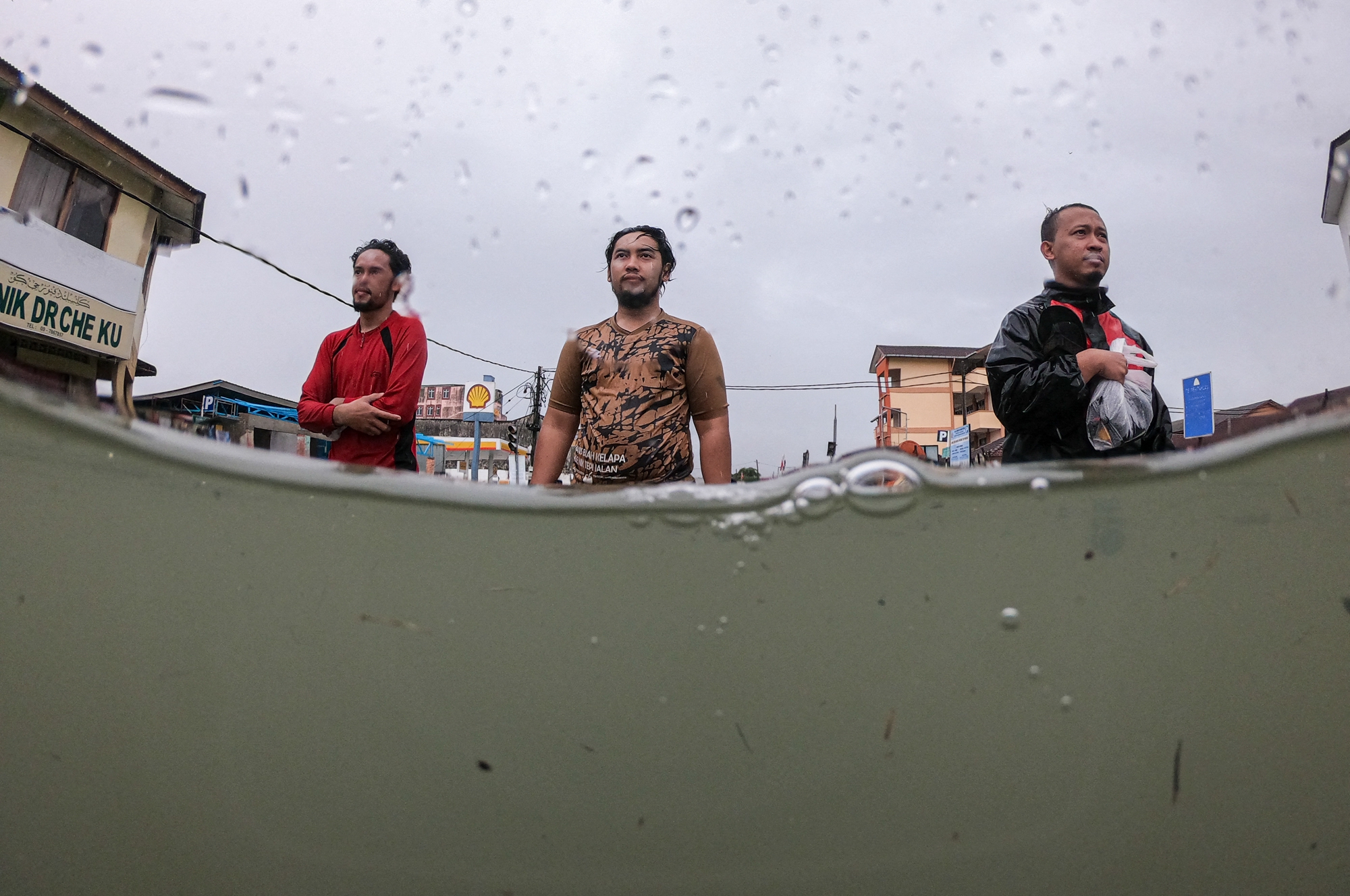 People wade through a flooded street during heavy rain in Pasir Puteh, in Malaysia's Kelantan state on November 30, 2024. (Photo by Mohd Rasfan/AFP Photo)