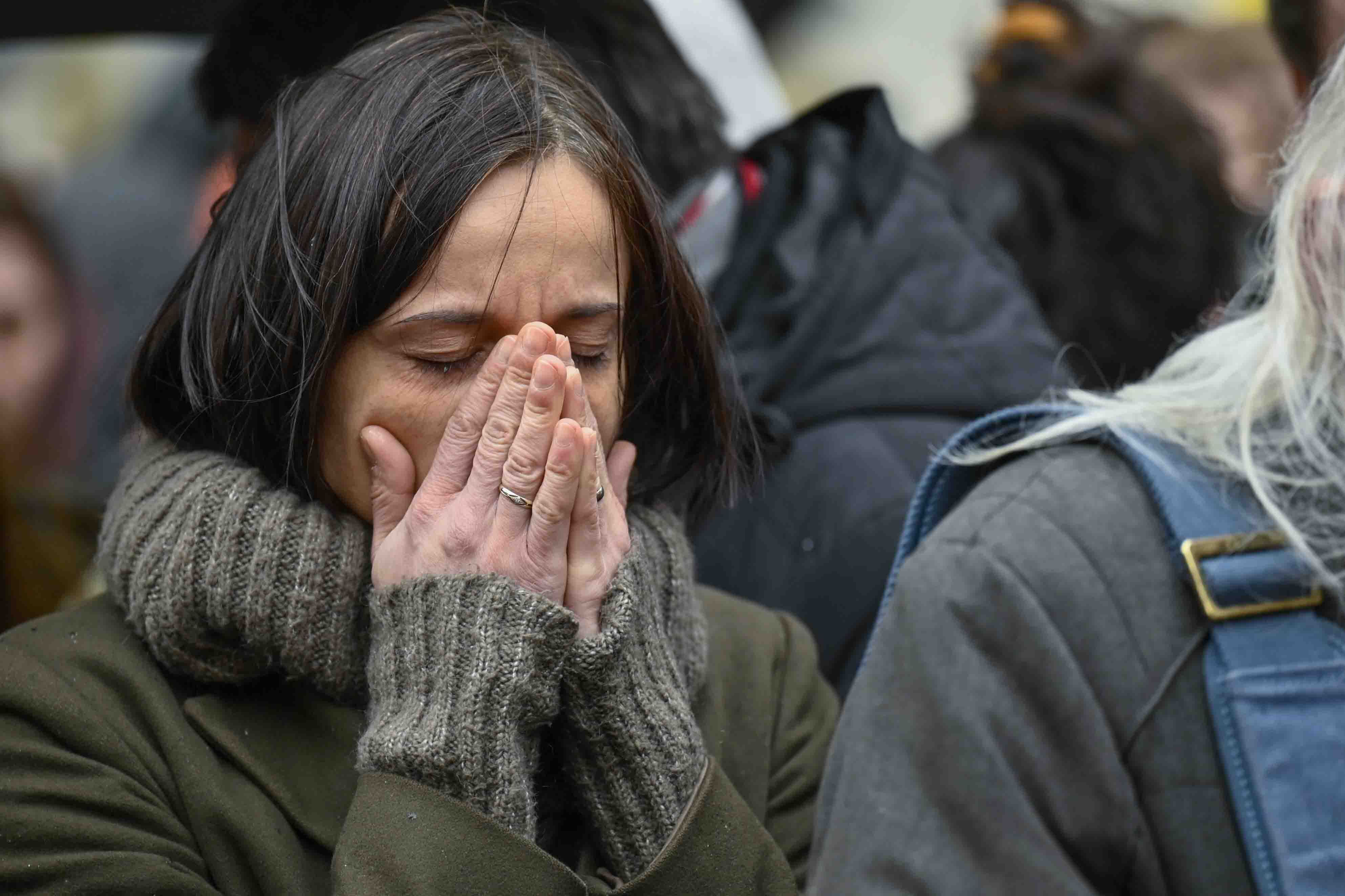 A woman cries outside the headquarters of Charles University for victims of mass shooting in Prague, Czech Republic, Friday, December 22, 2023. A lone gunman opened fire at a university on Thursday, killing more than a dozen people and injuring scores of people. (Photo by Denes Erdos/AP Photo)
