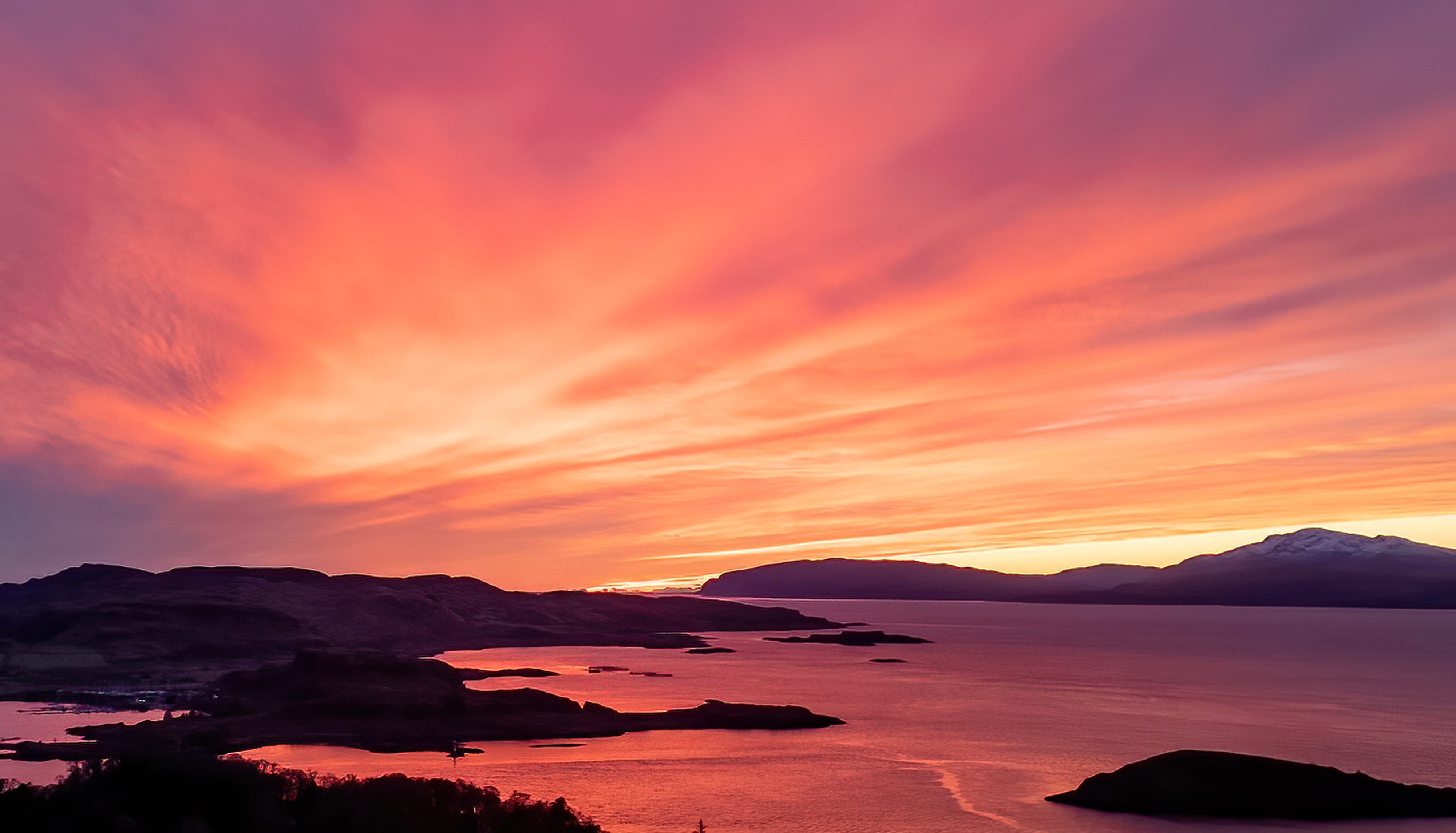A spectacular sunset this evening from Oban, Argyll turned the sea as well as the sky red on January 5, 2025. (Photo by Stephen Lawson/Sipa USA)