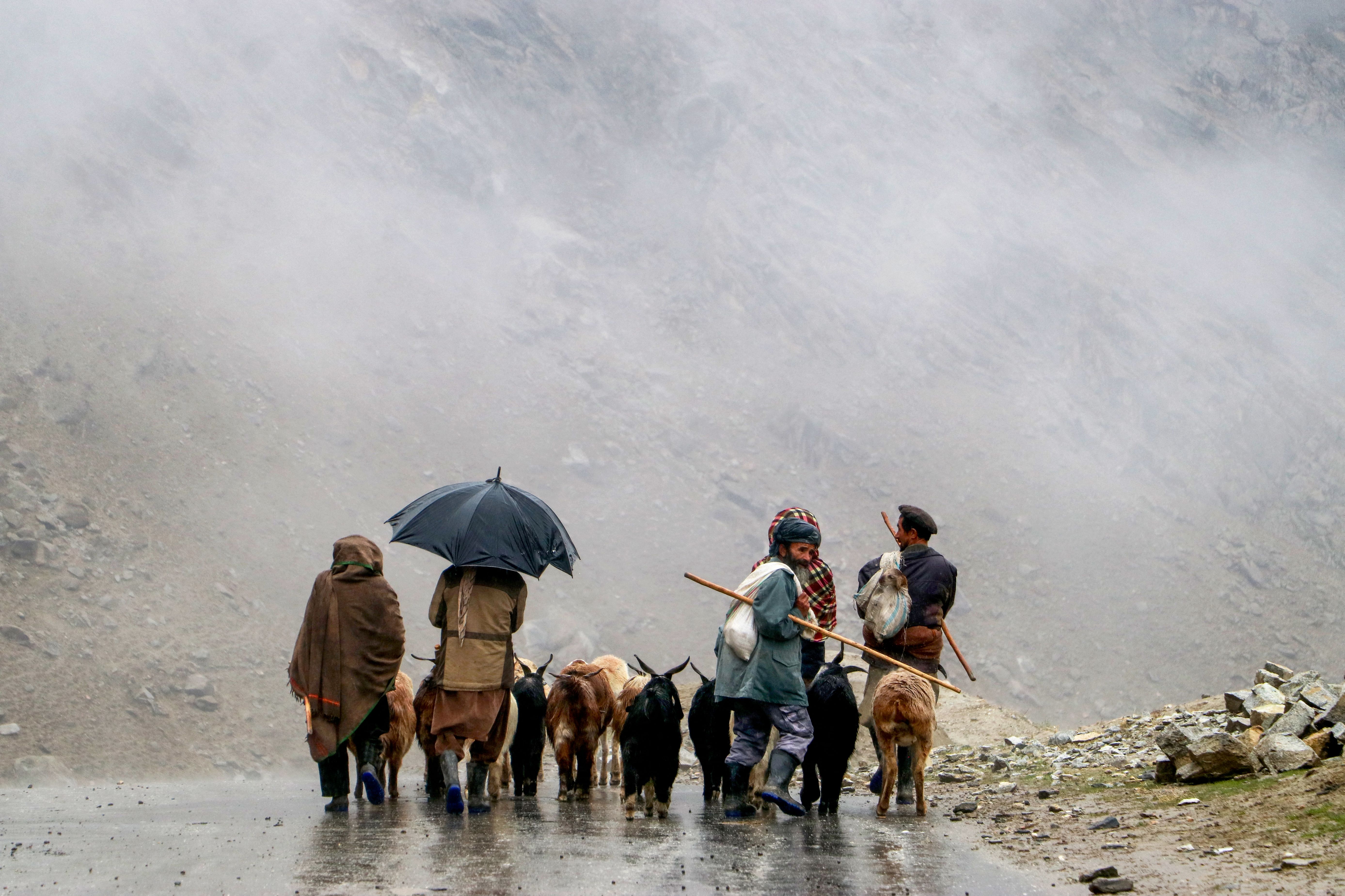 Afghan shepherds walk with their sheep along a street in Khash district of Badakhshan province on November 13, 2024. (Photo by Omer Abrar/AFP Photo)